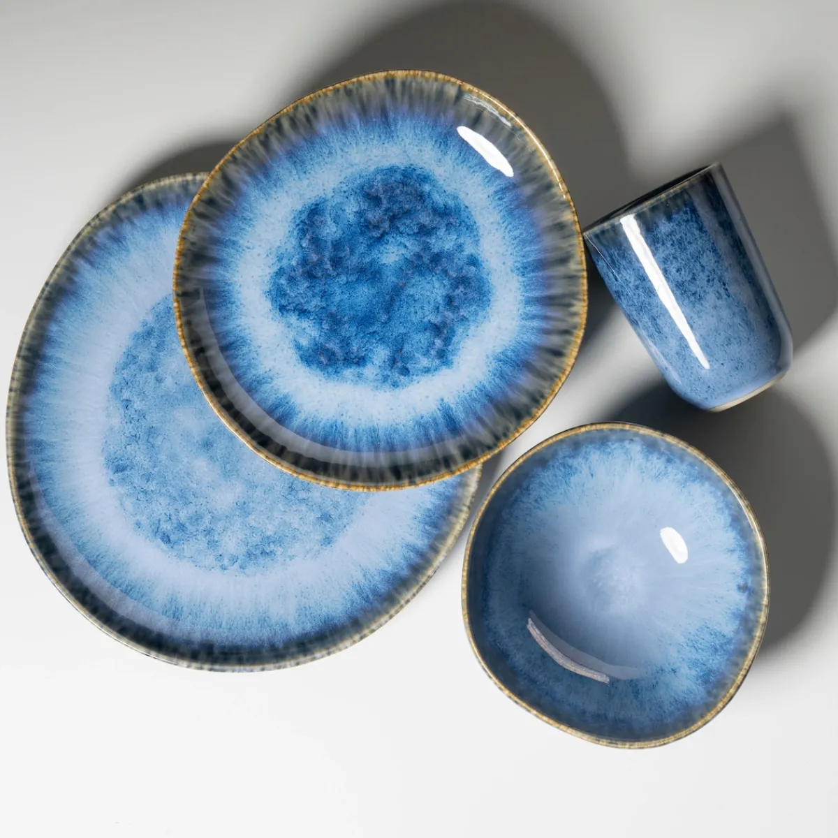 Wie die Gischt, die in jedem Sekundenbruchteil ihr Erscheinungsbild ändert, präsentiert sich unsere Kollektion WILDE SCHLUCHT mit einer unperfekten Formgebung und einer von zufälligen Farbverläufen geprägten Glasurtechnik. Jedes Teil dieser Kollektion ist einzigartig und handgemacht.