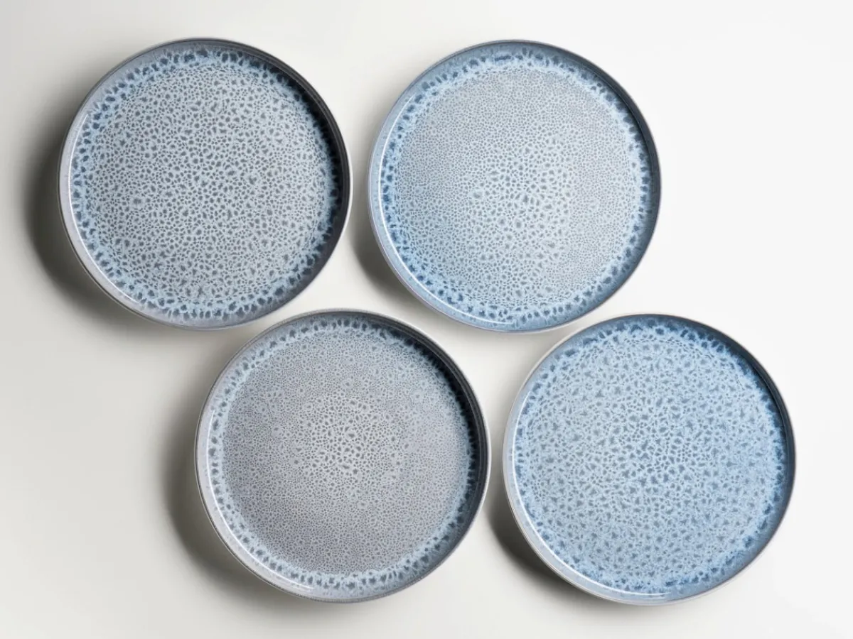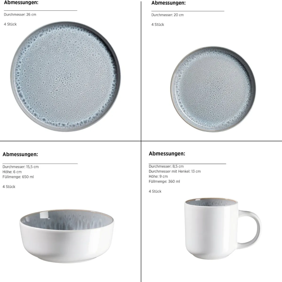 Harmonische Keramikformen und Reaktivglasuren mit einzigartigem Farbverlauf: Die GeschirrSerie „Lunaria“ der Marke MÄSER vereint alles, was man von einem modernen Geschirrservice erwartet. Das robuste, pflegeleichte Steinzeug Material lässt sich in der Spülmaschine reinigen und in der Mikrowelle verwenden. Eine unifarbene Außenseite im hellen Cremeton wird kombiniert mit einer visuellen, glänzenden Reaktivglasur. Diese besondere Reactive Glaze Glasurtechnik verhält sich während des Vorgangs im Brennofen individuell – jedes Teil entwickelt dabei seine ganz persönliche Farbgebung und Musterung. Dadurch ist jedes Stück ein echtes Unikat mit Charakter. Die Geschirr Kollektion „Lunaria“ umfasst Speiseteller (Ø 26 cm), tiefe Teller (Ø 18 cm), Dessertteller (Ø 20 cm), Schüssel mit Ø 15,5 cm sowie Kaffeebecher mit 360 ml Füllmenge. Zur besseren objektiven Vergleichbarkeit gehen unsere Füllmengenangaben von einer randvollen Befüllung aus.