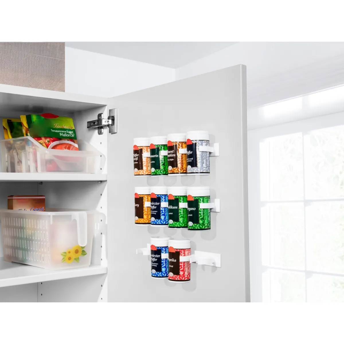 So haben Sie Gewürze immer übersichtlich und rasch zur Hand und ebenso schnell wieder aufgeräumt. Einfach die selbstklebende Halteleiste ankleben, fertig. 3 Leisten mit je 4 Plätzen für insgesamt 12 Gewürzdosen. Kein Bohren nötig!