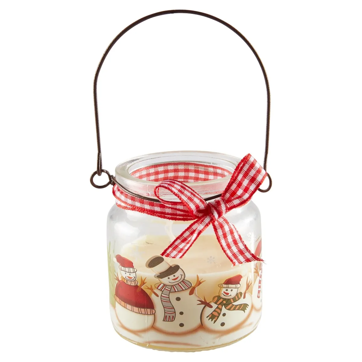 Dieses handbemalte Glas sorgt mit dem fröhlichen Schneemänner-Motiv nicht nur für Winterstimmung, sondern spendet auch romantisches Kerzenlicht an frostigen Wintertagen. Mit Karoschleife.