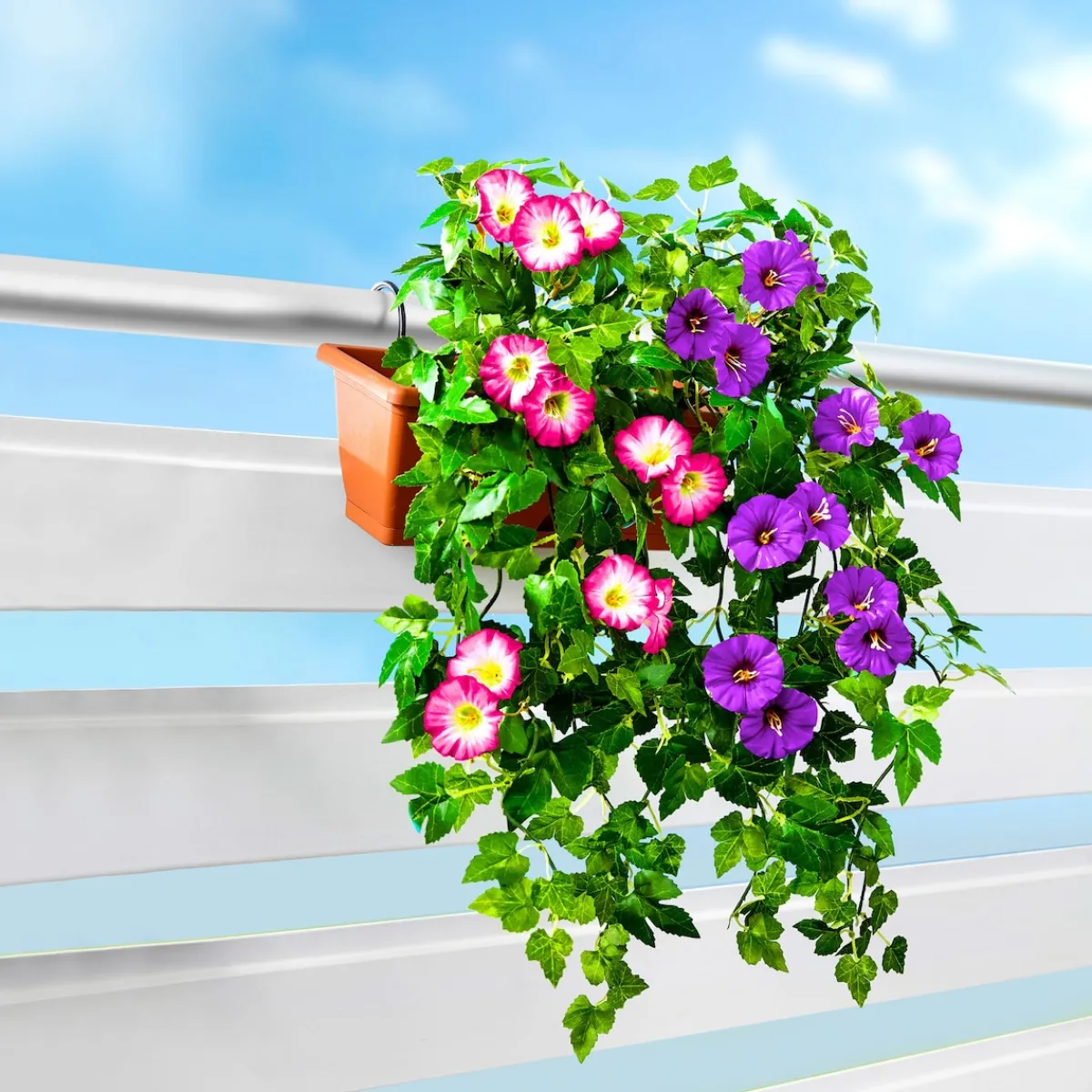Üppiger Blumenschmuck macht Balkon und Fassade erst so richtig sommerlich! Unsere Petunien sind genau richtig dafür – und Sie brauchen sie noch nicht mal zu gießen! Petunien in zartem Rosa oder in kräftigem Lila, dazu passend der praktische Pflanzkasten mit Befestigung. Jetzt kann der Sommer kommen!