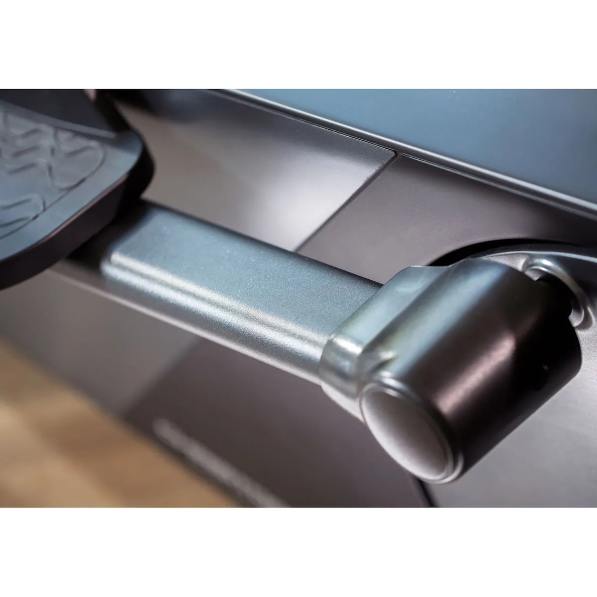 Die Handpulssensoren im Lenker ermöglichen eine Überwachung Ihrer Herzfrequenz während des Trainings, und für die Verwendung eines optionalen Pulsgurts ist bereits ein Empfänger im Computer integriert. Sowohl der Sattel als auch der Lenker sind neigungsverstellbar, um eine angenehme und individuelle Trainingsposition zu ermöglichen. Die rutschfesten Pedale mit separaten Pedalsicherungsriemen sorgen für eine stabile Fußposition während des Treibens.