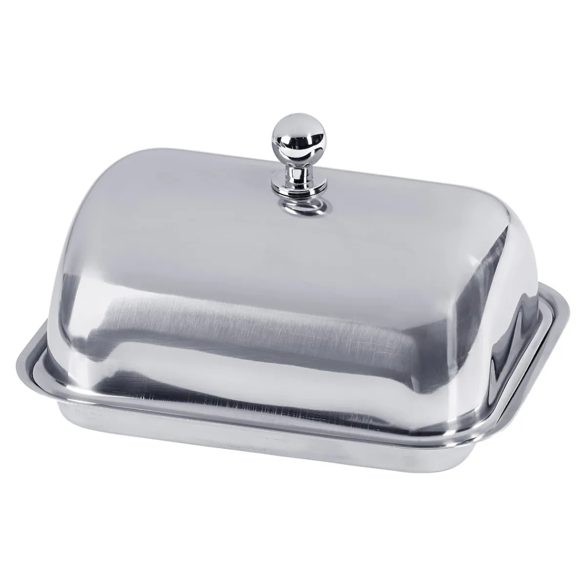 Neben ihrer isolierenden Funktion überzeugt die Butterdose aber auch mit ihrer gelungenen Optik. Denn mit dem hochwertigen Edelstahl macht sie auf jeder Tafel eine gute Figur und sorgt zwischen Brotkorb, Eierbechern und Marmeladengläsern für den einen oder anderen glanzvollen Moment. Ein Hingucker ist die Kugel auf der Haube, die als Griff dient und ein bequemes Öffnen und Schließen der Butterdose ermöglicht. Praktischer Nebeneffekt: Die polierte Oberfläche der Haube muss nicht angefasst werden und bekommt keine störenden Fingerabdrücke. In Sachen Reinigung zeigt sich die Butterdose unkompliziert: Nach dem Gebrauch lässt sie sich wahlweise von Hand spülen oder in die Spülmaschine geben.