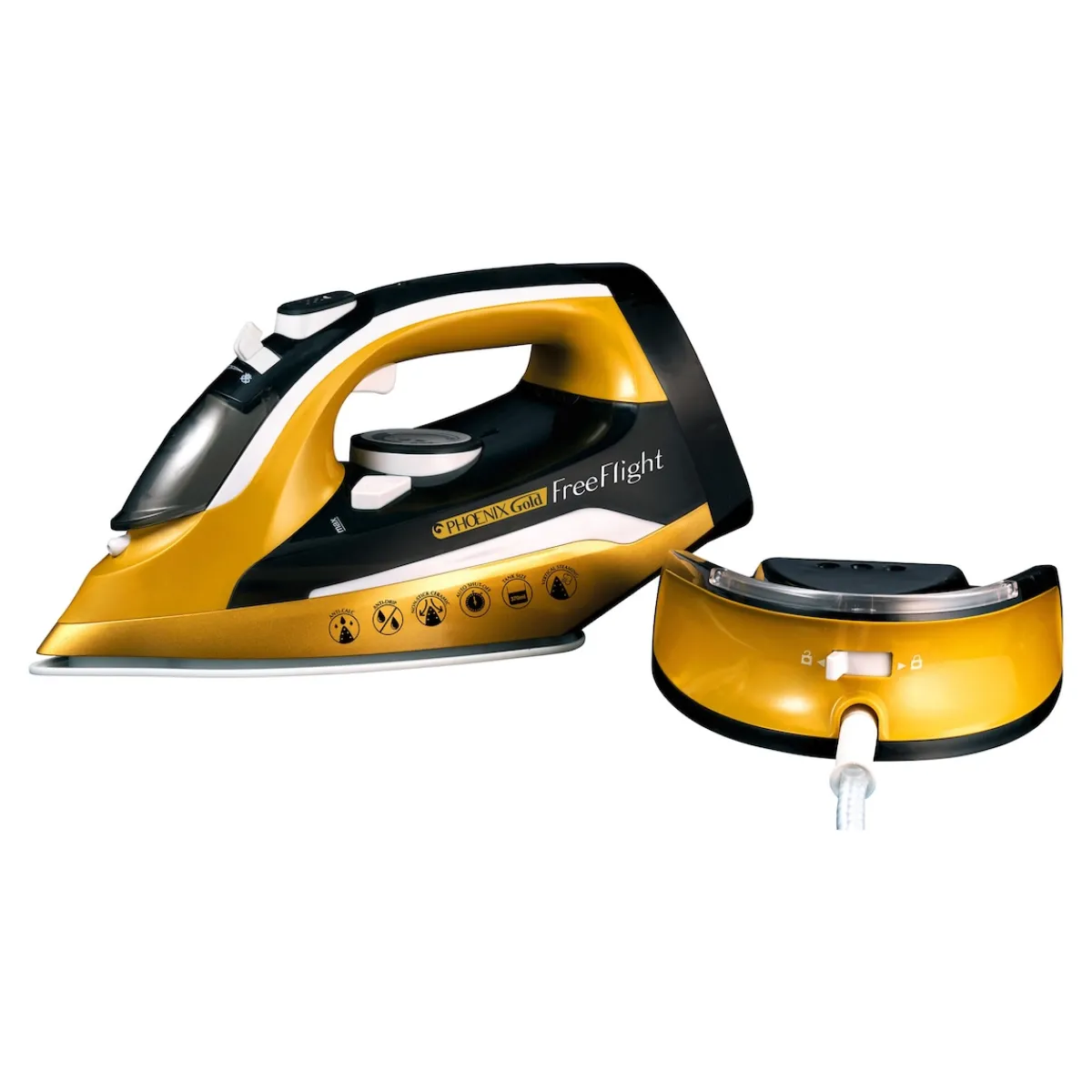 Praktisch: Der Phoenix Gold(R) Free Flight ist kabellos und damit besonders leicht zu handhaben. Ohne auf ein lästiges Kabel aufpassen zu müssen, in dem man sich oder das Wäschestück verheddern kann, ist die Arbeit viel schneller erledigt. Und abgesehen davon macht Sie der Verzicht auf ein Kabel natürlich flexibel in Ihrer Ortswahl. Warum nicht mal im Wohnzimmer oder im Garten bügeln? Mit dem Phoenix Gold(R) Free Flight sind Sie beim Bügeln völlig frei in Ihrer Standortwahl. Wenn Sie allerdings das Bügeln mit Kabel bevorzugen – kein Problem, Sie können das Gerät ebenso gut mit dem 1,9 m langen Kabel nutzen.