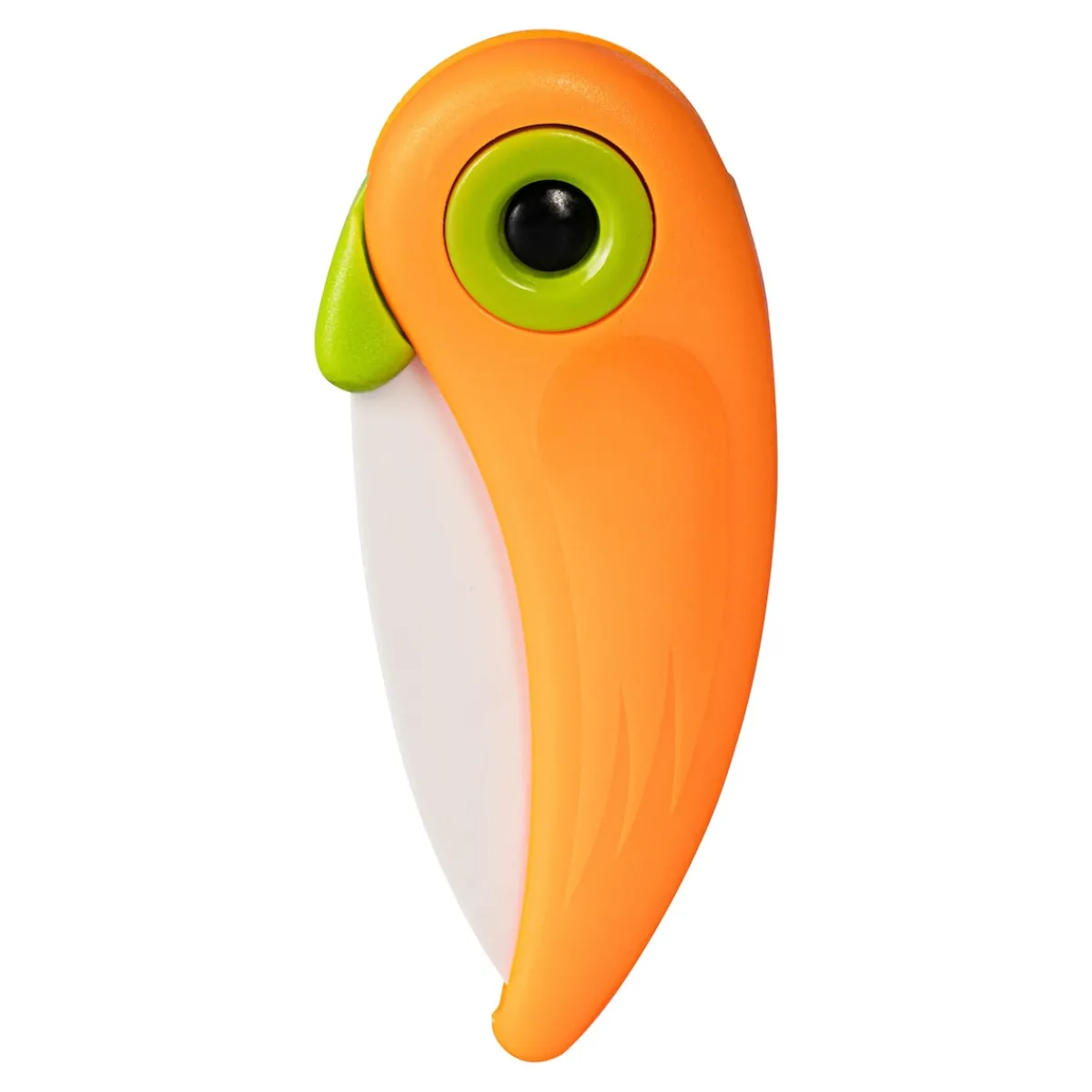 Die tragbare Mini-Klinge in Form eines fröhlich-bunten Exoten ist schnell einsatzbereit und ideal für die Frühstückpause oder fürs Picknick.