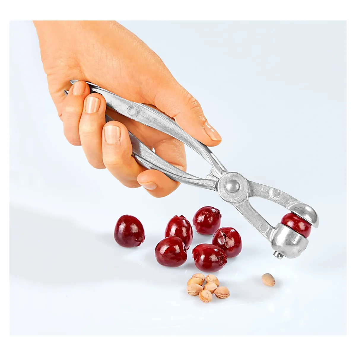 Dank dieses handlichen Helfers wird das Kirsch-Entkernen zum Kinderspiel! Ein Druck genügt – und schon können Sie die Früchte weiterverarbeiten oder direkt pur genießen.