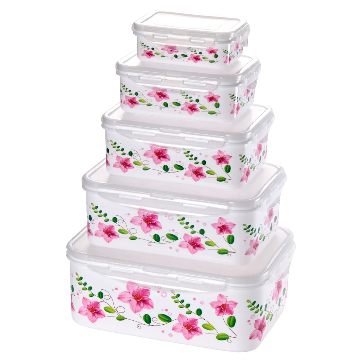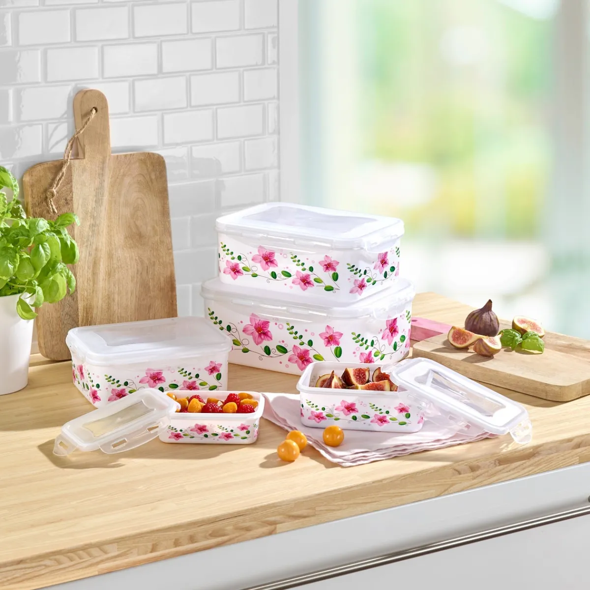 In diesen cleveren Frischhaltedosen bewahren Sie Ihre Lebensmittel mit System auf. Mit auslaufsicherem 4-fach-Klickverschluss. Platzsparend ineinander verstaubar.