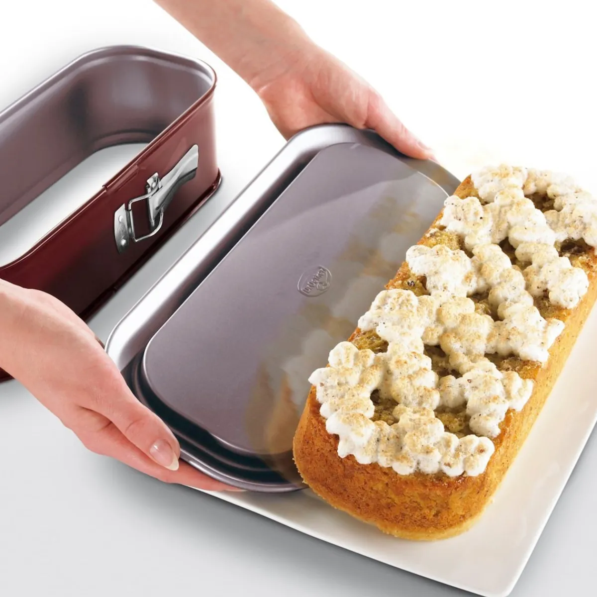 Eckige Springform zum Backen und Schichten von Kuchen und Torten aller Art, beste Backeregebnisse durch ausgezeichnete Wärmeleitung.