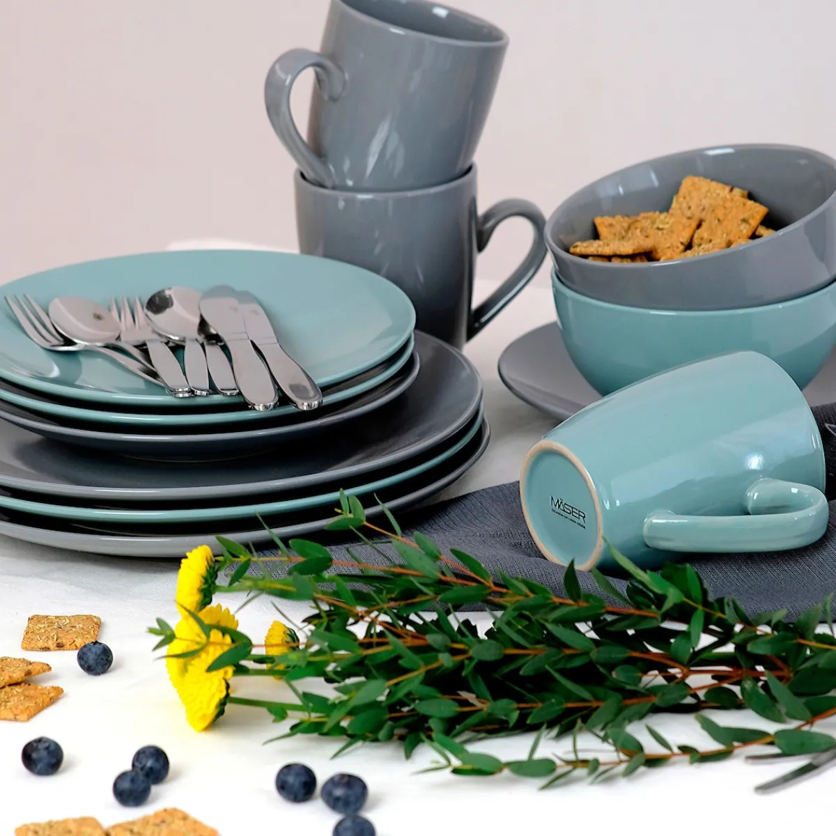Die jugendlich anmutende Keramikgeschirr Serie „Pastell Selection“ der österreichischen Traditionsmarke MÄSER bringt mit ihren ausgewogenen Farben und ihren schönen Rundungen gute Laune auf Ihren Esstisch – sowohl im Alltag als auch zu besonderen Anlässen. Gefertigt aus schönem, dickwandigem Steinzeug und vollflächig in pastelligen Farben glasiert, lenkt diese Kollektion den Fokus auf Ihre kulinarischen Kreationen und lässt ausreichend Raum für Ihre Tischdekoration. Dieses Essservice wird in einer auf Bruchsicherheit getesteten Transportverpackung aus ressourcenschonenden Materialien versendet. Bitte beachten Sie, dass unsere Füllmengenangaben für eine objektive Vergleichbarkeit von einer randvollen Befüllung ausgehen.