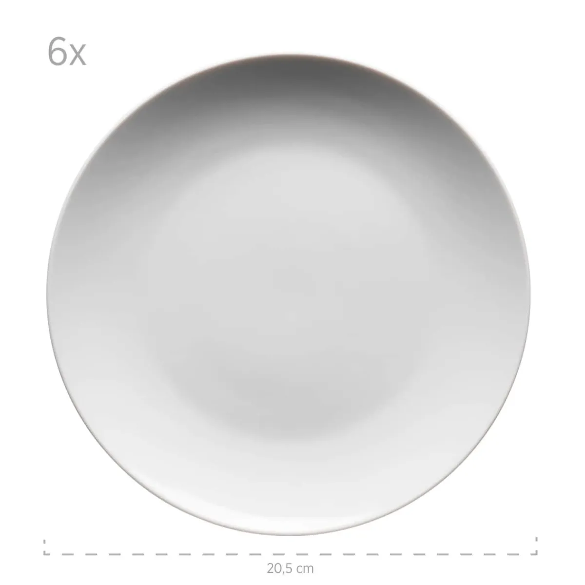 6 x Dessertteller à 20,5 cm, in der Farbe Weiß