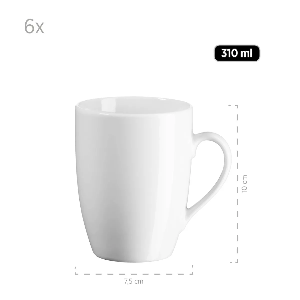 6 x Kaffeebecher à 31 cl, in der Farbe Weiß