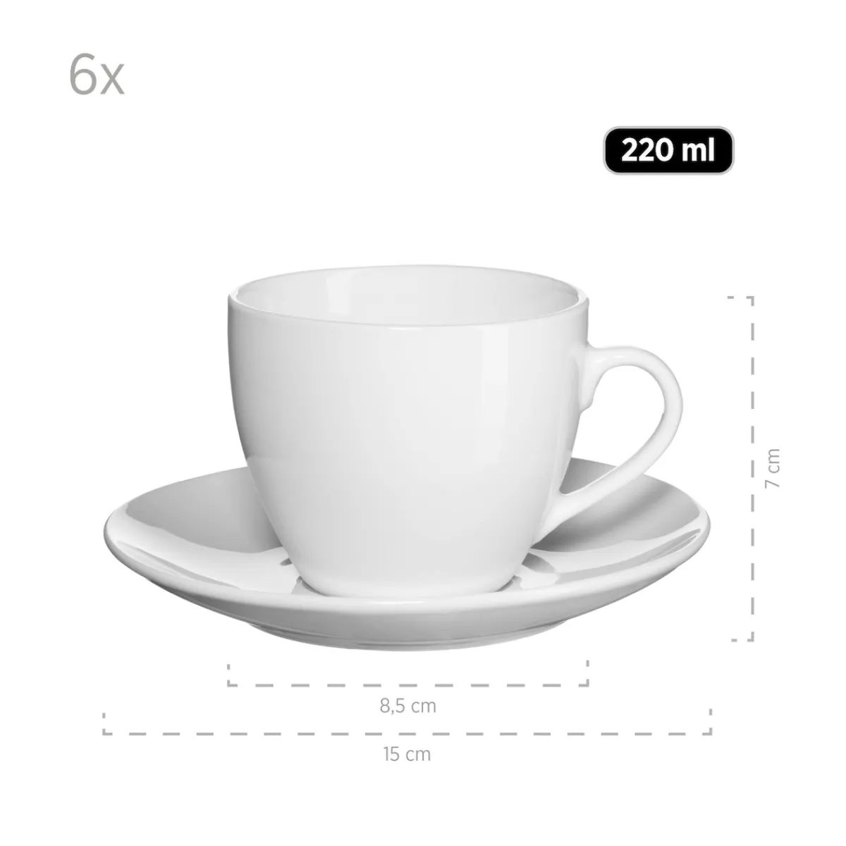 6 x Kaffeeuntertasse à 15 cm, in der Farbe Weiß
