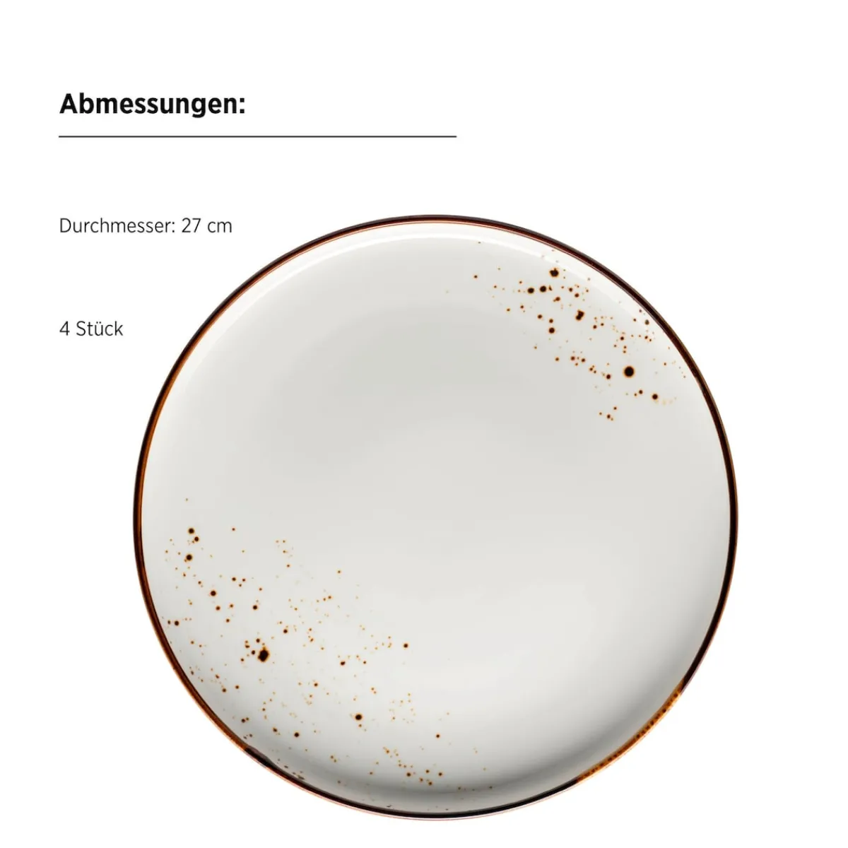 Die Porzellan Geschirr-Serie „Pintar“ der österreichischen Traditionsmarke MÄSER begeistert mit einer harmonischen Farbkombination aus Creme- und Naturtönen sowie modernen, runden Formen. Die Kombination der leicht glänzenden Vollglasur und den braunen bzw. blauen Sprenkeln mit dem dezenten, farblich passenden Rand ergibt ein ausgewogenes Farbspiel in modernem Vintage-Stil. Die wie zufällig aufgetragenen Punkte und der visuelle Rand sorgt für einen edlen, natürlichen Handmade Touch.