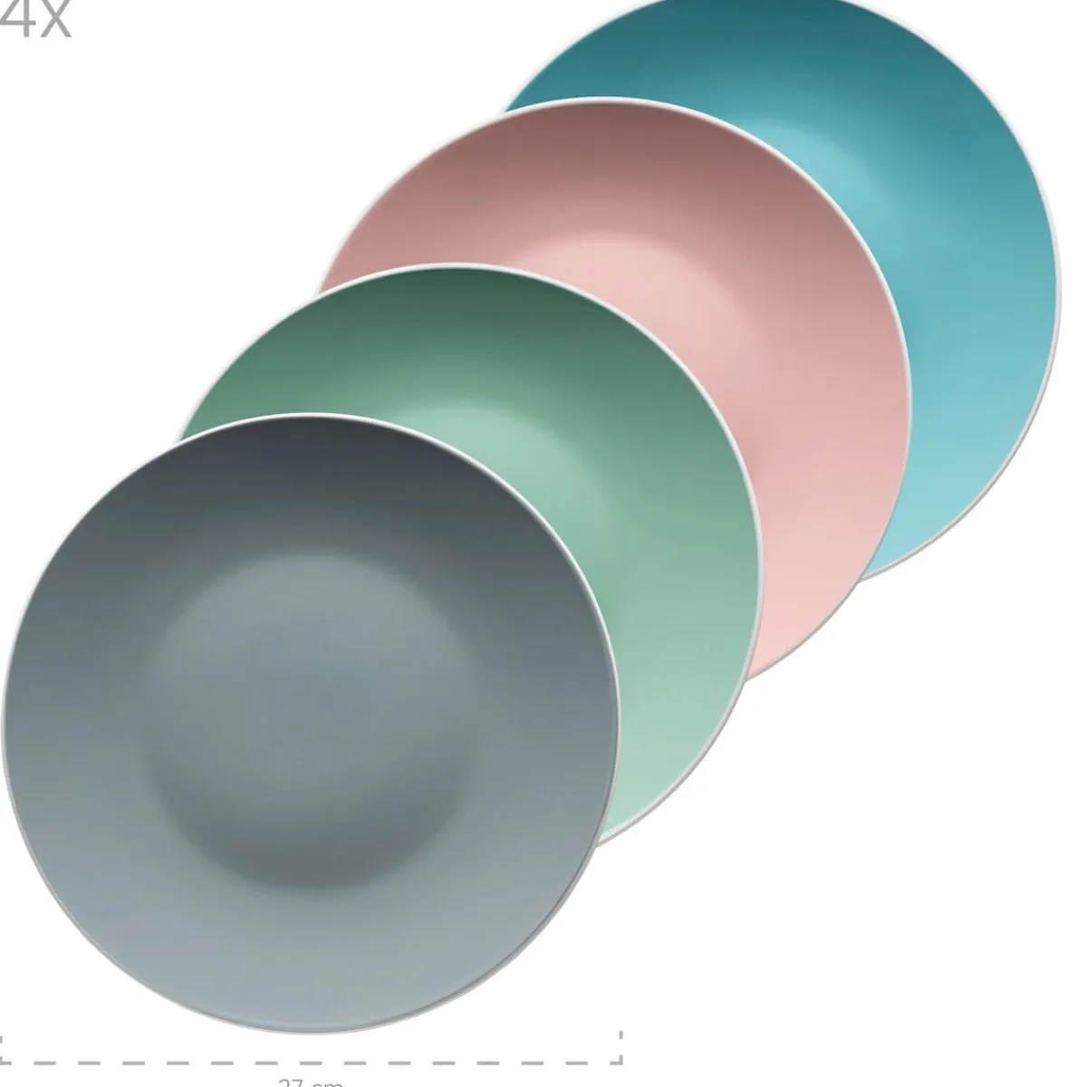 4 x Teller flach 27 cm (rosa,grau,grün,türkis)