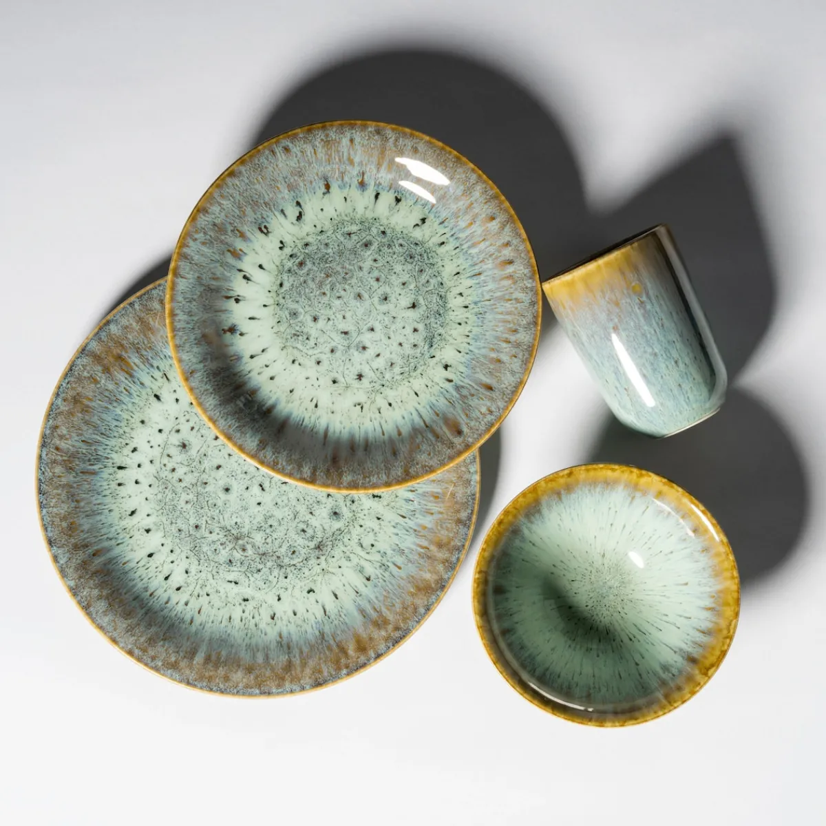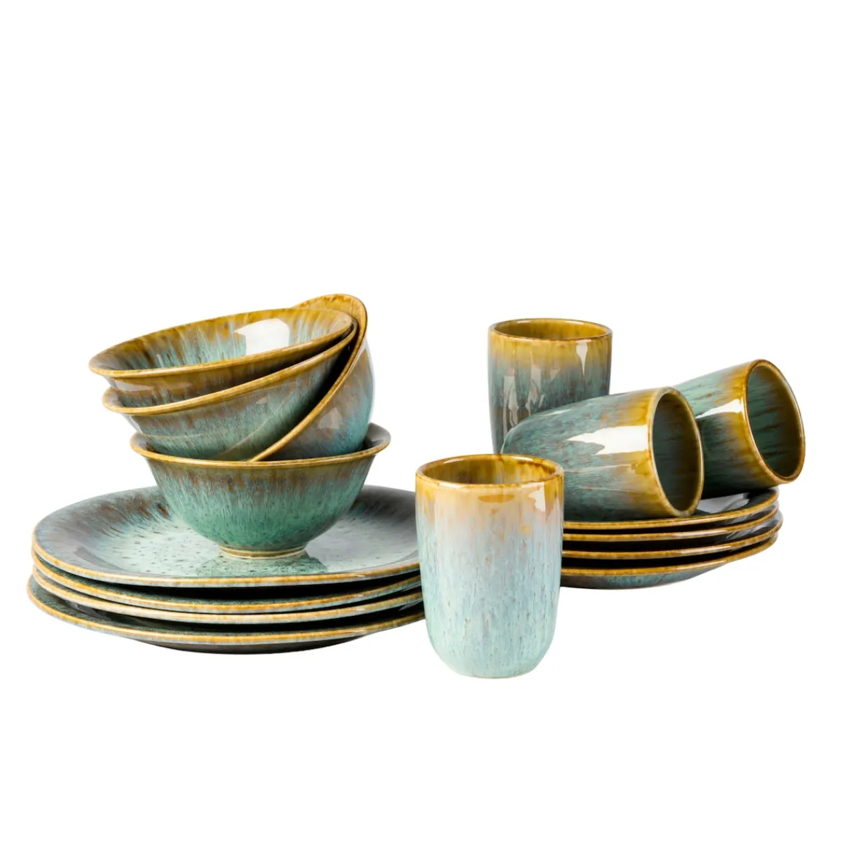 Die moderne Hausfrau Kombiservice, Steinzeug Flussufer blau, grün, braun