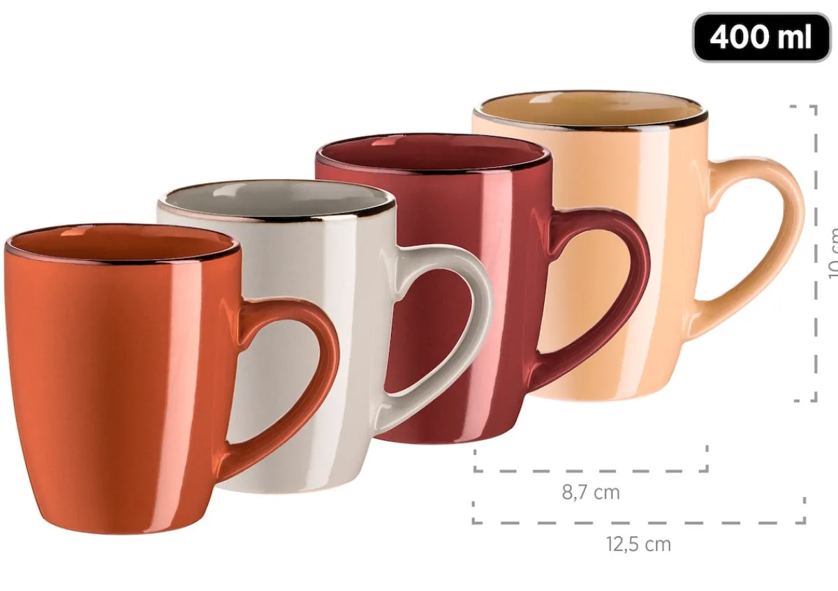 Die Kollektion METALLIC RIM der österreichischen Traditionsmarke MÄSER kombiniert auf erfrischende Weise modernes Design in Material, Form- und Farbgebung mit festlicher Eleganz. Trotz seiner messingfarben schimernden Umrandung ist dieses Geschirrset spülmaschinen- und mikrowellengeeignet, und damit äußerst pflegeleicht. So verzaubert die Serie METALLIC RIM Ihre Gäste nicht nur zu besonderen Anlässen, sondern wertet Ihren Esstisch auch im Alltag auf. Ein besonderes Highlight ist die großzügige Mehrzweckschale, die Müslischale und Suppenteller im Zeitgeist des Bowl-Trends vereint. Dieses Service wird in einer speziell für dieses Set entwickelten, vielfach getesteten Transportverpackung aus umweltfreundlicher Wellpappe versendet. Zur besseren objektiven Vergleichbarkeit gehen unsere Füllmengenangaben von einer randvollen Befüllung aus. Bitte beachten Sie: Die Serie METALLIC RIM wird händisch glasiert, wodurch leichte Unebenheiten, kleine Einschlüsse und minimale Farbabweichungen auftreten können.