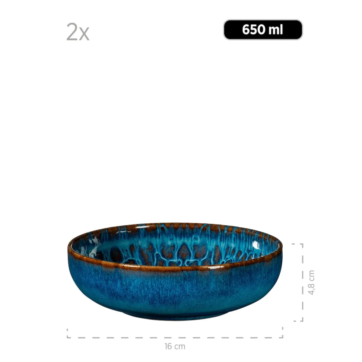 Wenn traditionelle portugiesische Azulejo-Ornamente auf magische Reaktivglasuren treffen, entstehen einzigartige Werke von fesselnder Schönheit. Die unter ressourcenschonenden Bedingungen in Portugal hergestellte Keramikgeschirr-Kollektion „Tiles“ der Traditionsmarke MÄSER transportiert die jahrtausendealte Faszination maurischer Kunst, welche durch eine besondere Glasurtechnik auf jedem Teil von unterschiedlich fließenden Farbverläufen umspielt wird. Besonders gut zur Geltung kommen die inspirierten Dekore dieser Geschirrserie durch die elegant-reduzierte und zugleich großzügige Formgebung der Teller und Schalen. Der Clou: Ganz nach Ihrem Geschmack entscheiden Sie sich zwischen selbstbewussten, dickwandigen Scandi-Formen mit umlaufendem Steg oder grazileren, abgerundeten Coupe-Formen mit geringerem Gewicht und Platzbedarf in Spülmaschine und Küchenschrank. Für welchen Formstil auch immer Sie sich entscheiden: Mit der Tafelgeschirr-Kollektion „Tiles“ hinterlassen Sie nicht nur einen bleibenden Eindruck bei Ihren Gästen, sondern verwandeln auch jede Ihrer Mahlzeiten in einen wahren Augenschmaus. Die Serie „Tiles“ ist aus Steinzeug gefertigt – einer hochwertigen Form der Keramik, die nicht mit dem brüchigeren und poröseren Steingut zu verwechseln ist. In seiner täglichen Handhabung unterscheidet sich hochwertiges Steinzeuggeschirr kaum von Porzellangeschirr: Die gesamte Serie ist mikrowellen- und spülmaschinengeeignet, hitzebeständig und tiefkühlgeeignet und damit absolut alltagstauglich. Dieses Service Set wird in einer vielfach auf Bruchsicherheit getesteten Paketversandverpackung aus ressourcenschonenden Materialien versendet. Bitte beachten Sie: Durch die besondere Glasurtechnik können minimale Unebenheiten in der Glasur auftreten, ebenso tragen Farbabweichungen zwischen verschiedenen Teilen zum typischen, lebendigen Charakter dieser Kollektion bei. Zur besseren objektiven Vergleichbarkeit gehen unsere Füllmengenangaben stets von einer randvollen Befüllung aus.