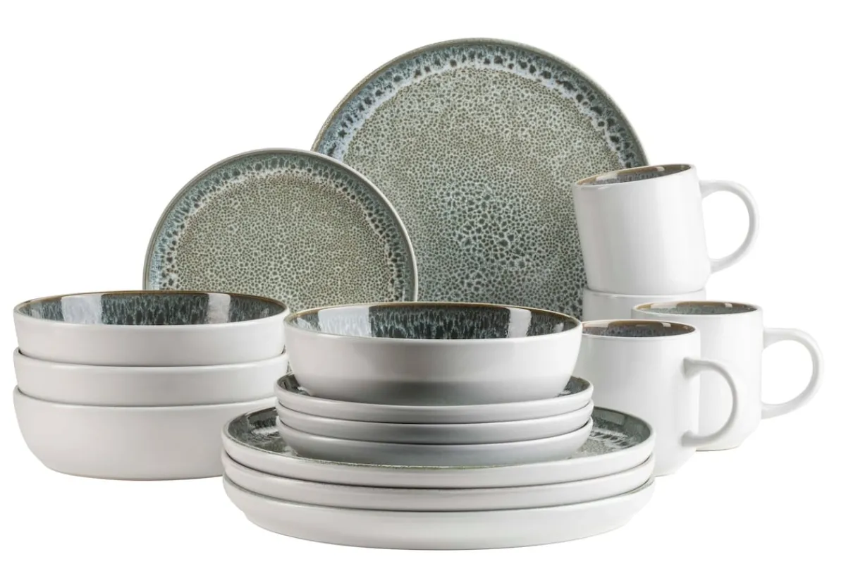 Das MÄSER Kombiservice der Serie Malea in Beige / Blau / Grün mit dunklen Sprenkeln bringt skandinavische Leichtigkeit auf den Tisch. Dank der einzigartigen Reaktivglasur ist jedes Teil ein Unikat mit lebendigem Farbspiel. Die Teller, Schüsseln und Becher sind ideal für alle Mahlzeiten des Tages und bieten durch ihre Form und Farbgebung eine moderne Vintage-Optik. Praktisch im Alltag durch Spülmaschinen- und Mikrowellentauglichkeit – ein echtes Highlight für Ihr Zuhause.
