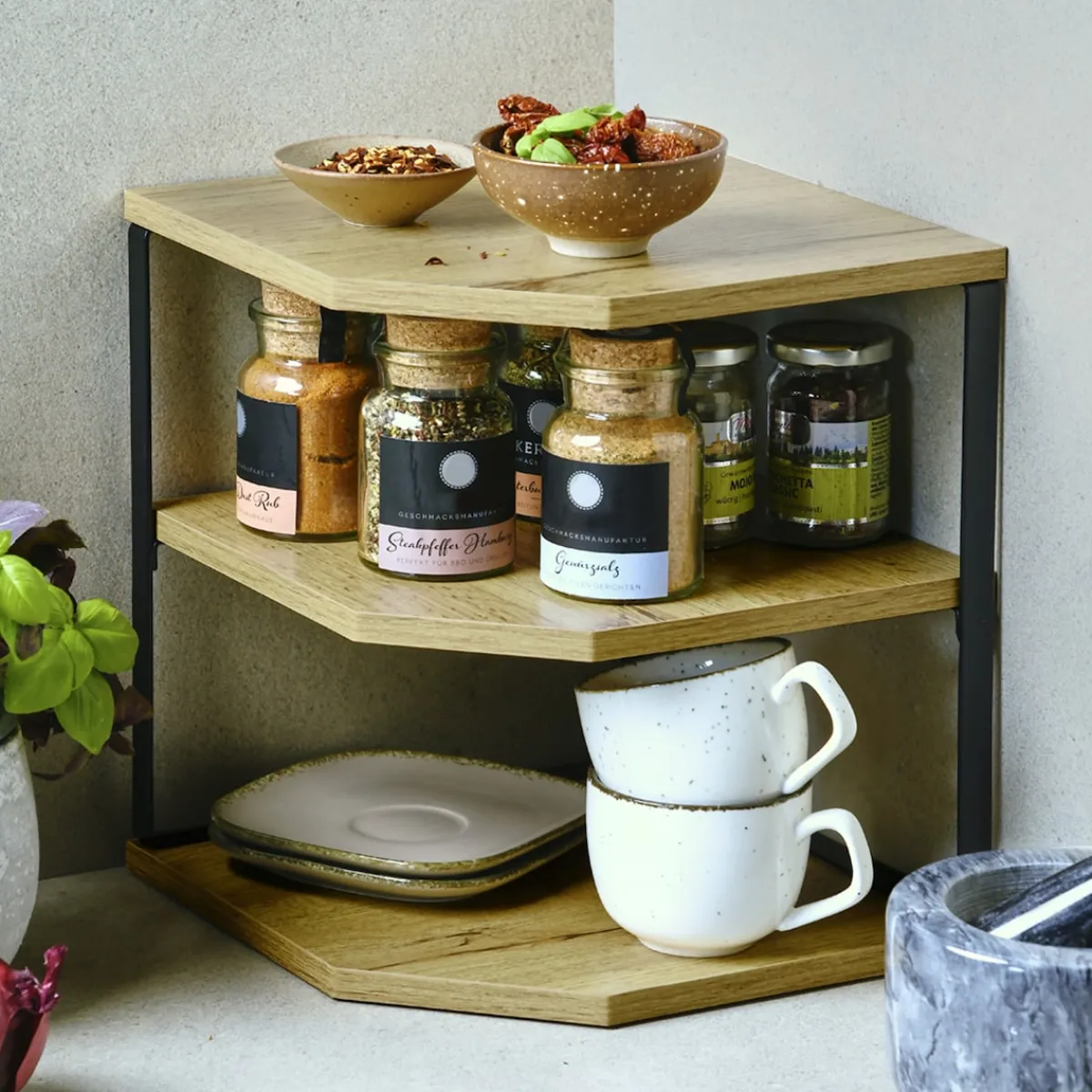 Dieses Eckregal bringt Stil und Ordnung in jede Raumecke – ganz gleich ob in der Küche, im Bad oder im Wohnzimmer. Dank des modernen Industrial Designs fügt es sich harmonisch in verschiedenste Einrichtungsstile ein. Die robuste Kombination aus MDF-Holz und Metall macht es stabil und pflegeleicht zugleich. Ob für Gewürze, Kosmetik, kleine Pflanzen oder Dekoartikel – hier schaffen Sie smarten Stauraum, wo vorher nur leerer Platz war.