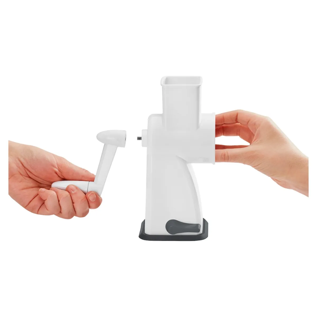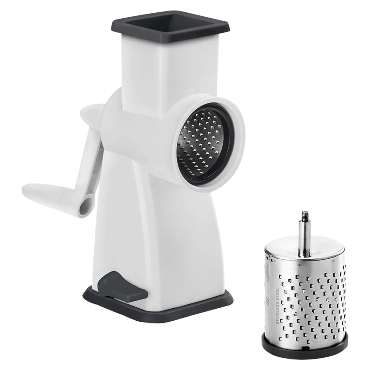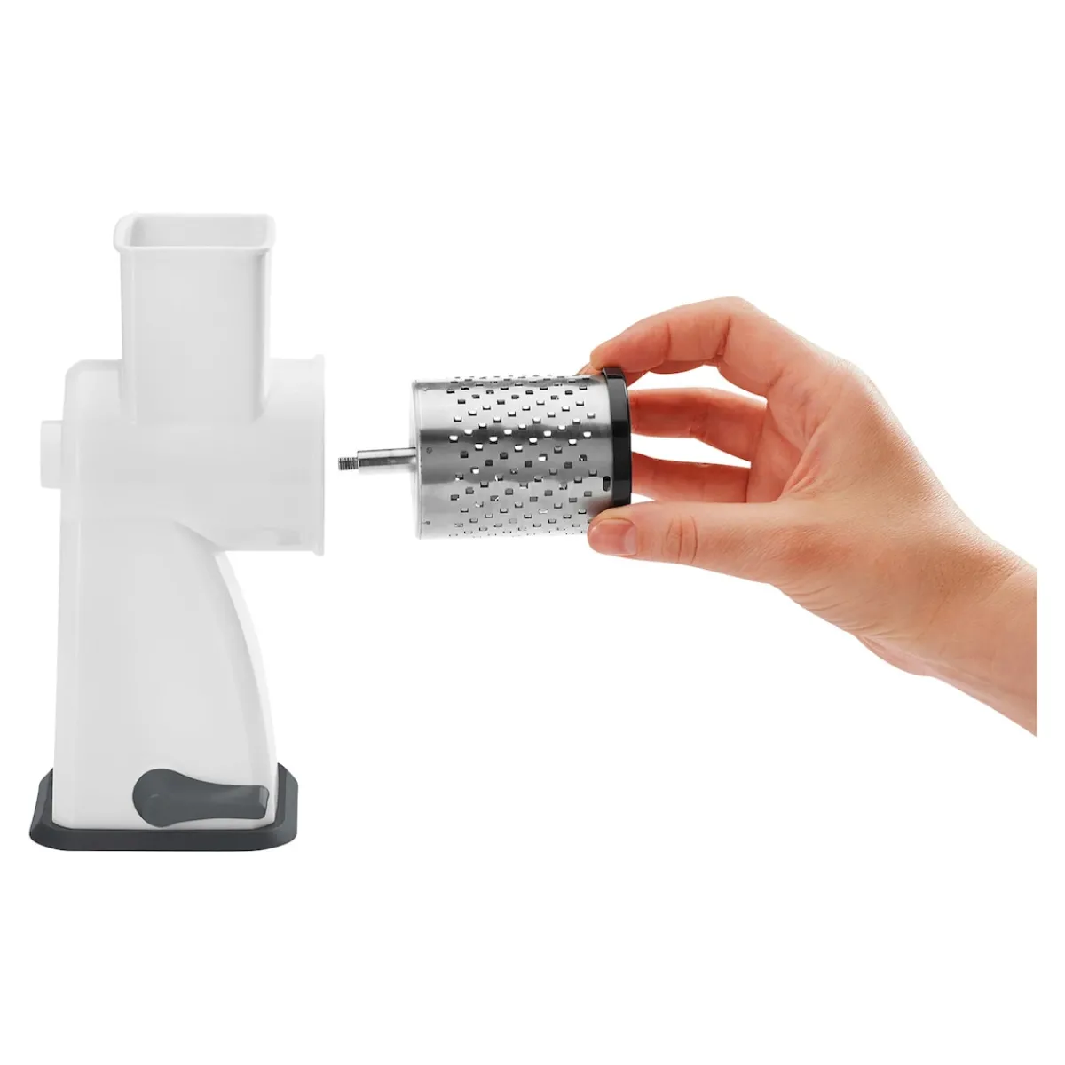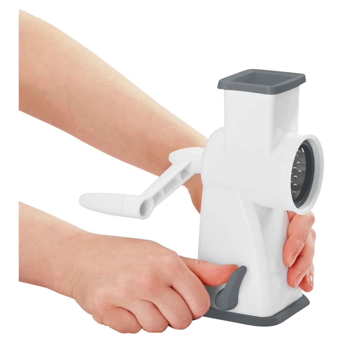 Für Mandeln, Nüsse, Schokolade oder Käse geeignet. Mit Saughebel zur Befestigung am Tisch oder auf der Arbeitsplatte. Mit Inox-Einsatz und Sicherheitsschieber, bzw. Fingerschutz.