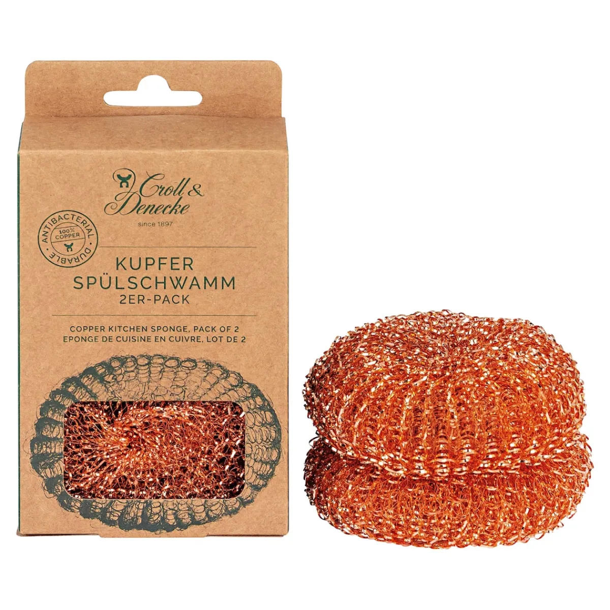 Kupfer ist ein nicht-rostendes Weichmetall, das Töpfe sanft und gründlich reinigt.