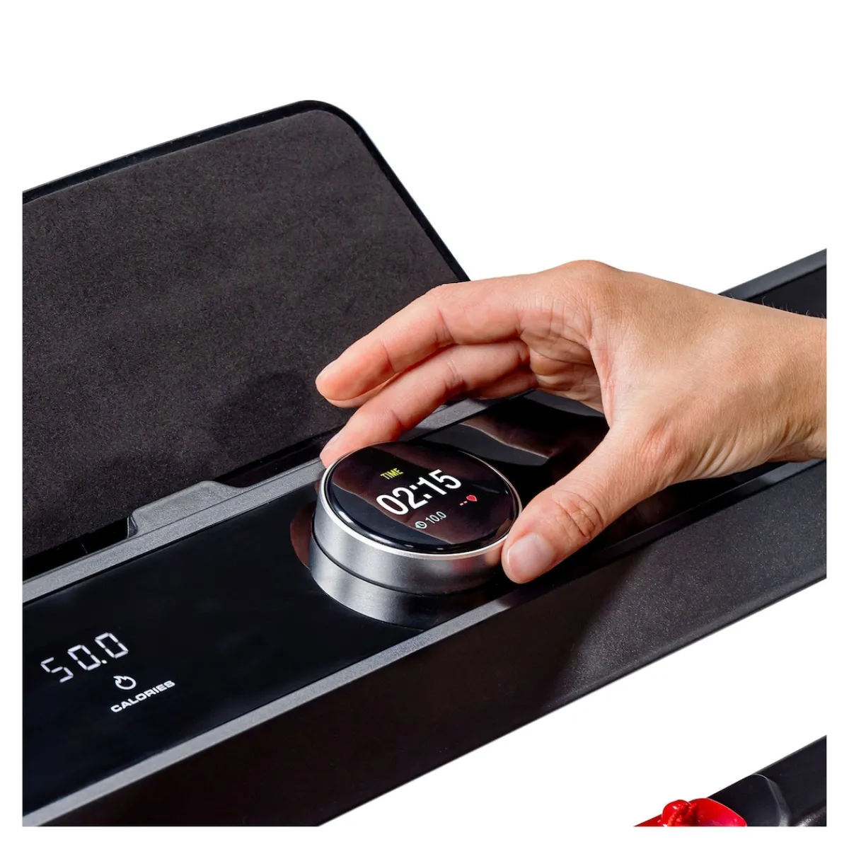 Die integrierten Handpulssensoren in den Griffen ermöglichen eine bequeme Überwachung Ihrer Herzfrequenz während des Trainings, und die Geschwindigkeit kann in präzisen 0,1 km/h-Schritten von 1 bis 16 km/h eingestellt werden.