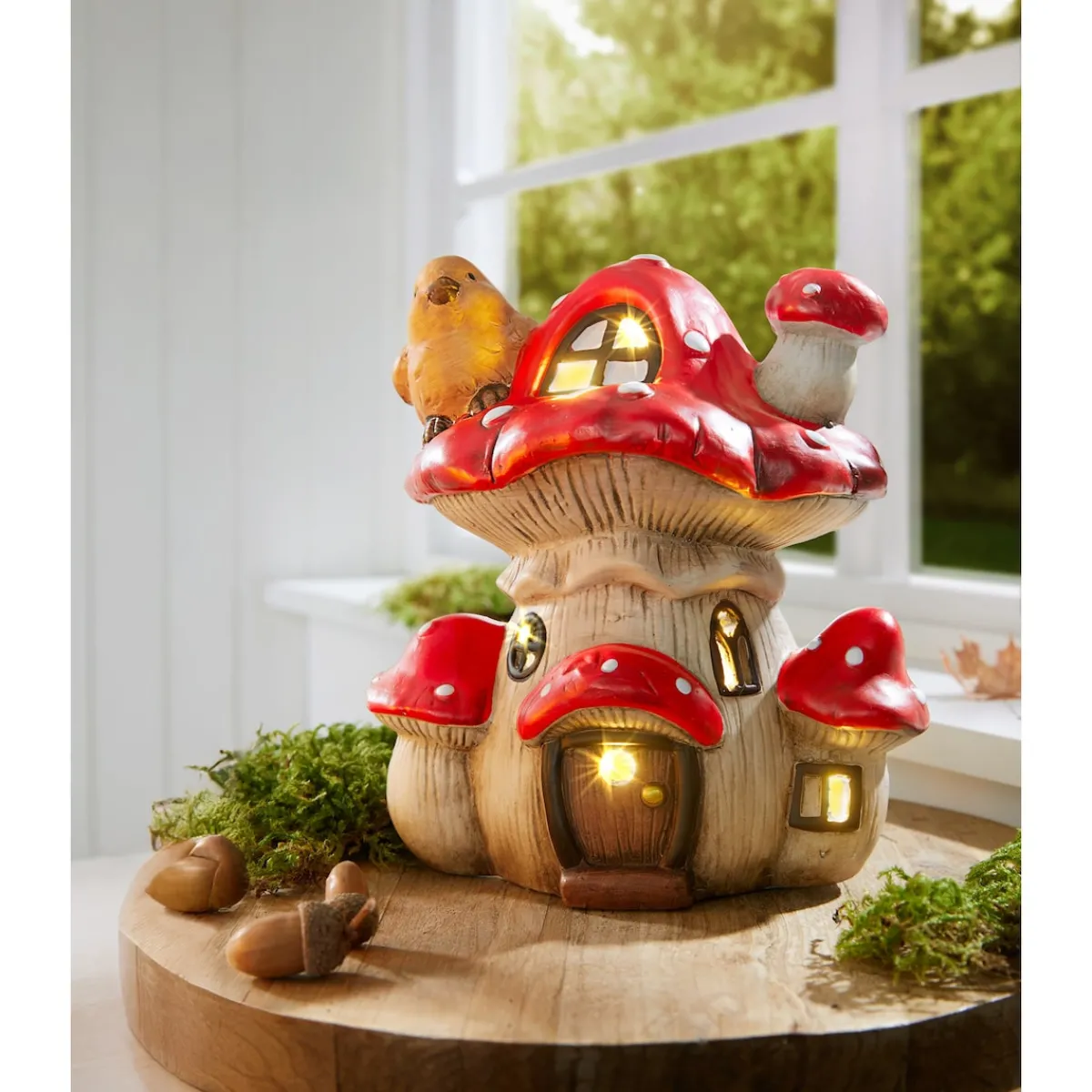 Dieses liebevoll gestaltete Pilzhaus ist nicht nur ein Deko-Element – es ist ein Stück Herbstmagie. In typischer Fliegenpilz-Optik gehalten, strahlt es von innen heraus ein angenehm warmweißes LED-Licht aus und bringt so gemütliche Stimmung in Ihr Zuhause.