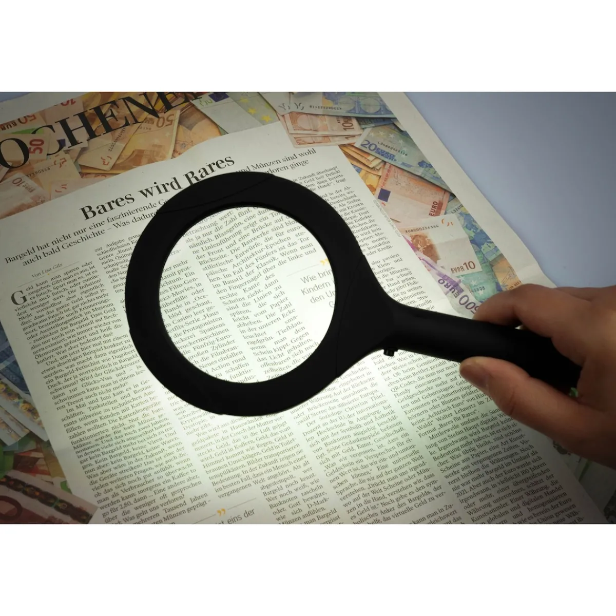 Die handliche Lupe im schlichten Design schenkt Ihnen dank 3-facher Vergrößerung wieder Freude am Rätseln oder Lesen von Zeitungen und Büchern. Bei schlechten Sichtverhältnissen sorgen integrierte LEDs für eine optimale Beleuchtung.