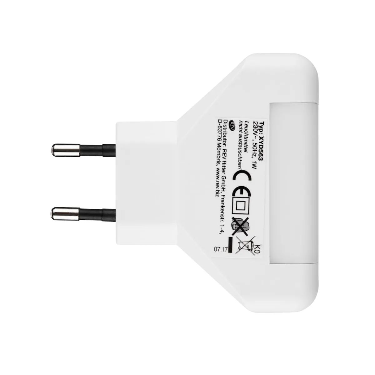 Einfach in die Steckdose stecken, einschalten und schon leuchtet das LED-Licht sanft. Ideal, um nachts den Weg ins Badezimmer zu finden! Mit 2 LEDs und Ein-/Ausschalter. 230 V, 1 W.