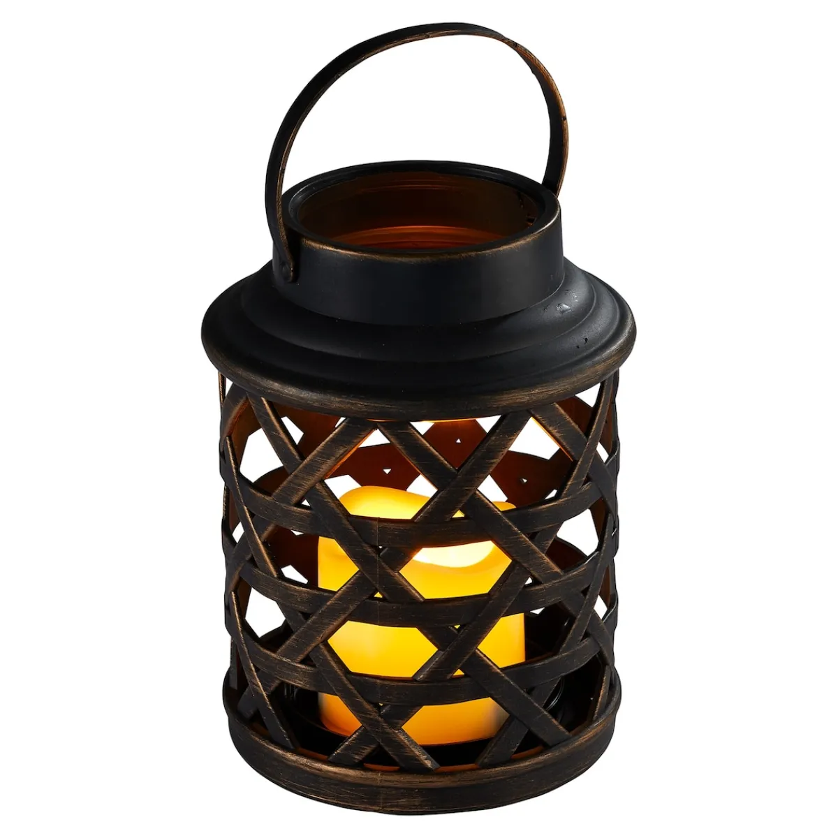 Das LED-Windlicht sorgt abends mit seinen goldenen Lichteffekten für ein wohlig-warmes Ambiente auf Terrasse oder Balkon. Praktisch: einfach nach Belieben hinstellen oder am Henkel aufhängen.