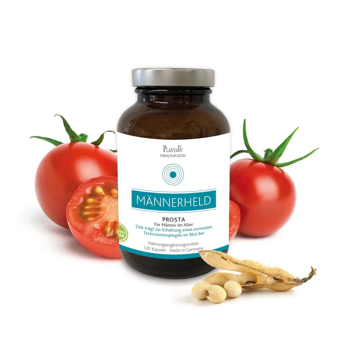 Unsere MännerHeld Kapseln enthalten fünf wertvollen Pflanzenextrakten (Sägepalm Extrakt, Brennnesselwurzel Pulver, Tomaten Extrakt, Kürbiskern Extrakt und Granatapfel Extrakt) sowie lebenswichtige Spurenelemente- Zink und Selen.