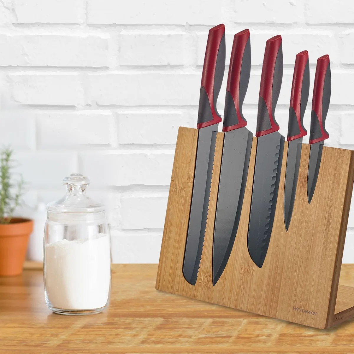 Ihre Messer sind oft zerkratzt oder abgenutzt, weil sie unsachgemäß gelagert wurden? Mit diesem praktischen Messerblock aus hochwertigem Material bleibt jedes Messer sicher an seinem Platz – durch den extra starken Magnetkern können Sie sich sicher sein, dass nichts herunterfällt. Dank der speziellen Neigung und stabilen Konstruktion sind alle Messer – egal wie groß oder klein – perfekt verstaut und immer schnell griffbereit.