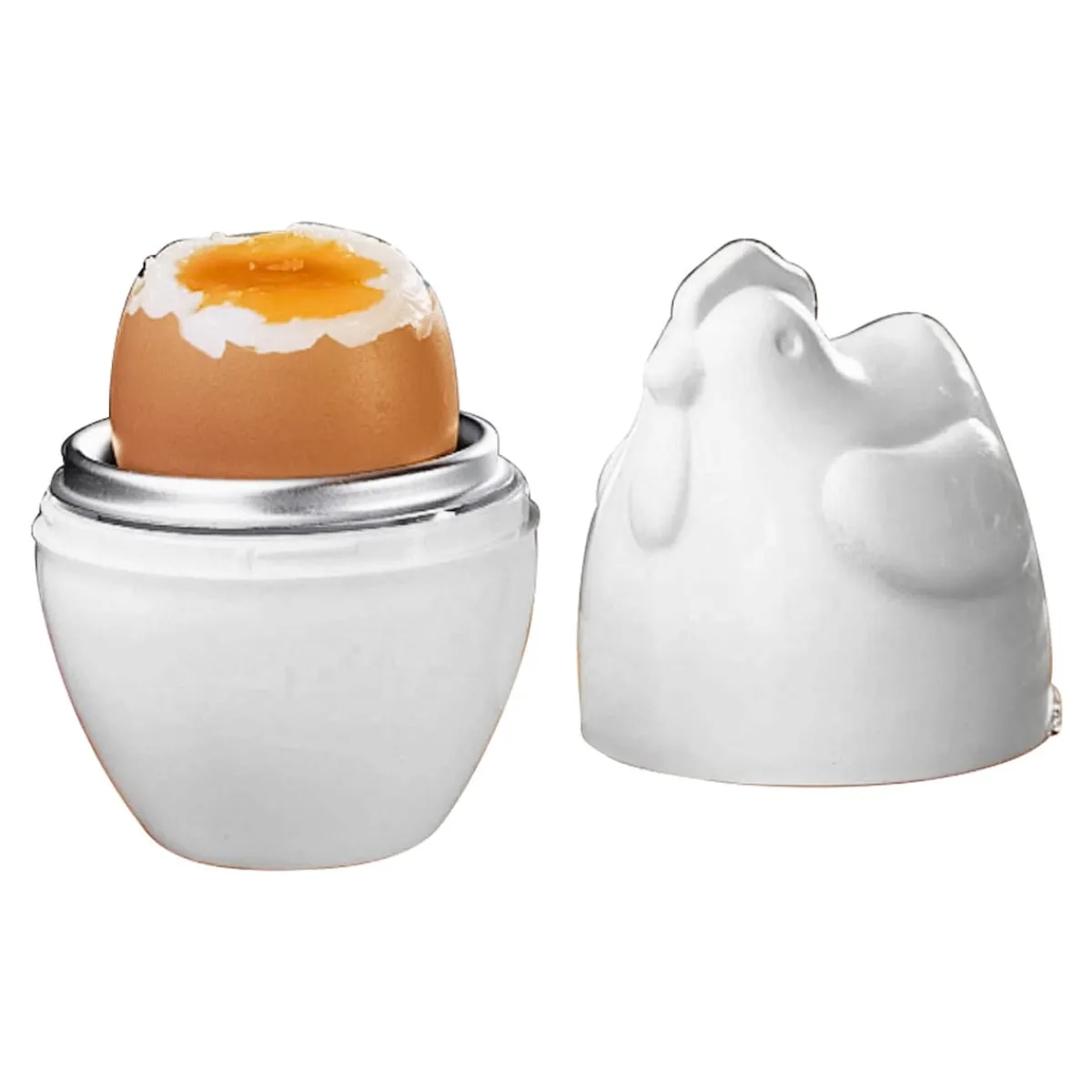 Mit diesem genialen Helfer in origineller Hühneroptik bereiten Sie Ihr Frühstücksei blitzschnell und einfach in der Mikrowelle zu.