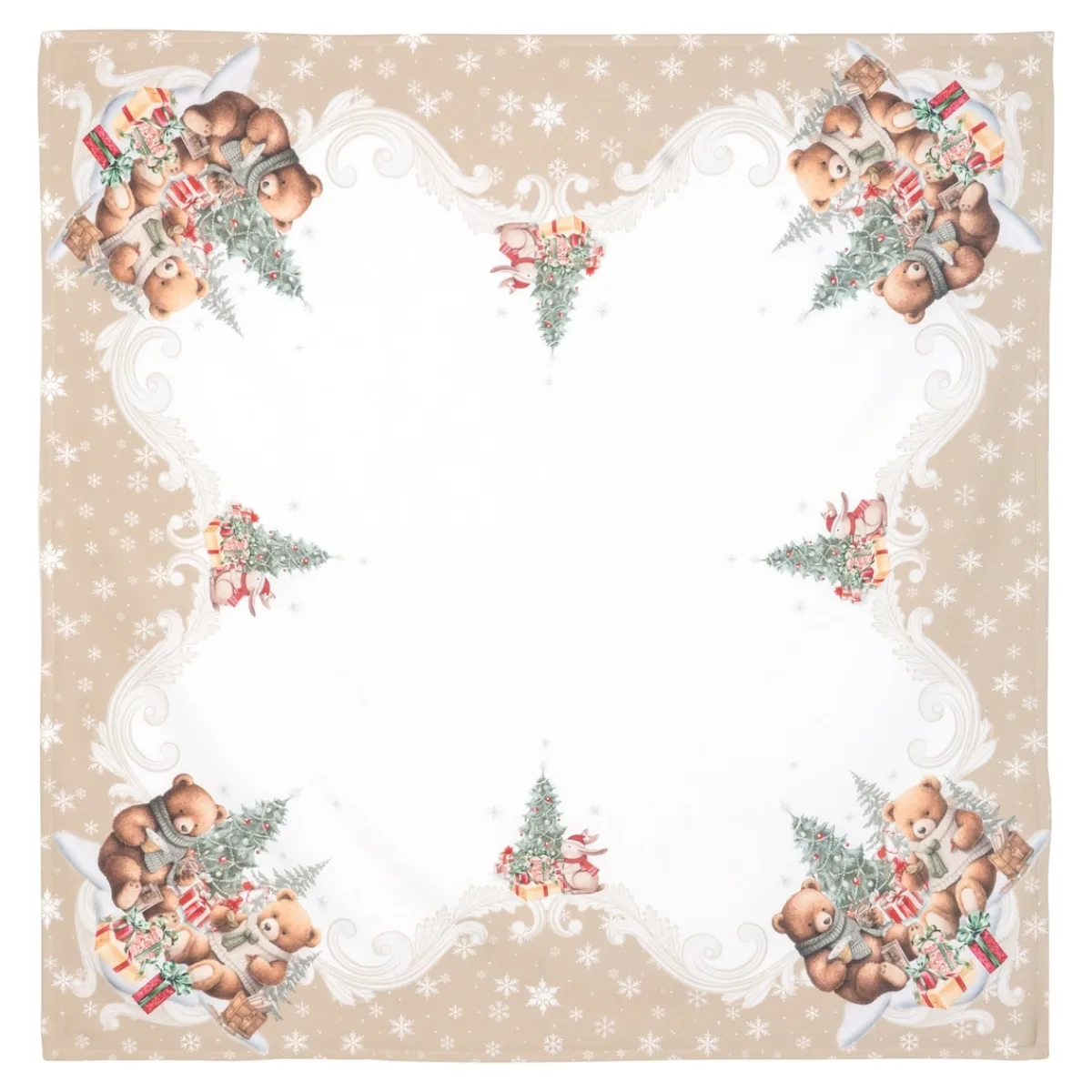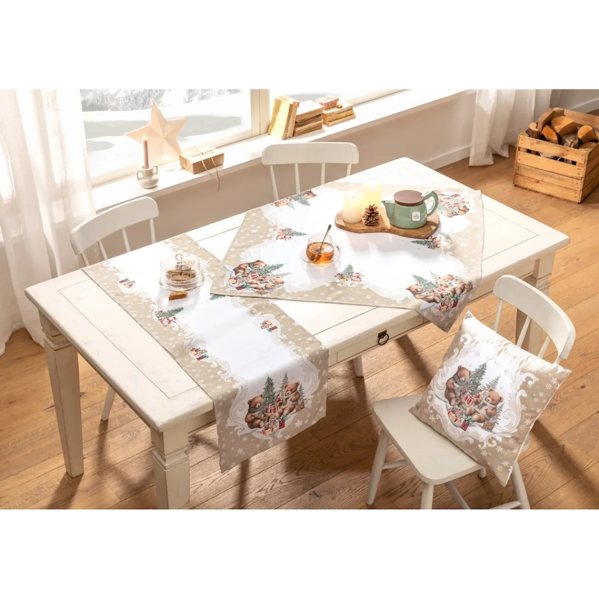 Die Mitteldecke „Teddy Bescherung“ bringt festliche Freude auf Ihren Tisch! Mit niedlichen Teddys, die die Weihnachtsstimmung perfekt einfangen, wird jede Mahlzeit zum Fest. Das charmante Design verleiht Ihrer Tafel eine warme und einladende Atmosphäre, ideal für die Adventszeit und Weihnachtsfeierlichkeiten. Bringen Sie mit dieser Decke Gemütlichkeit und Freude in Ihr Zuhause!