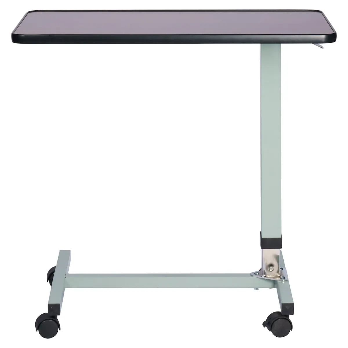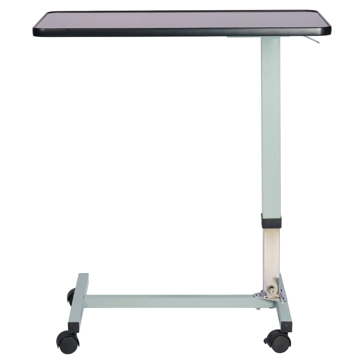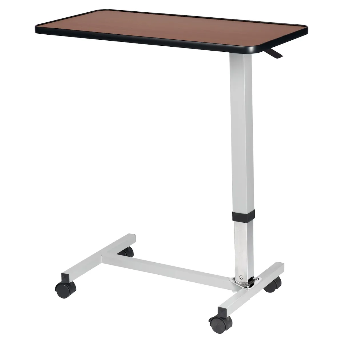 Mehr Komfort für bettlägerige Menschen zum Essen, Schreiben oder Lesen. Höhenverstellbare Tischplatte mit erhöhtem Rand. Plattenhöhe von 75 – 118 cm per Hebel variierbar. Fuß und Säule aus robustem Stahl. Rollen und Hebel aus Kunststoff.