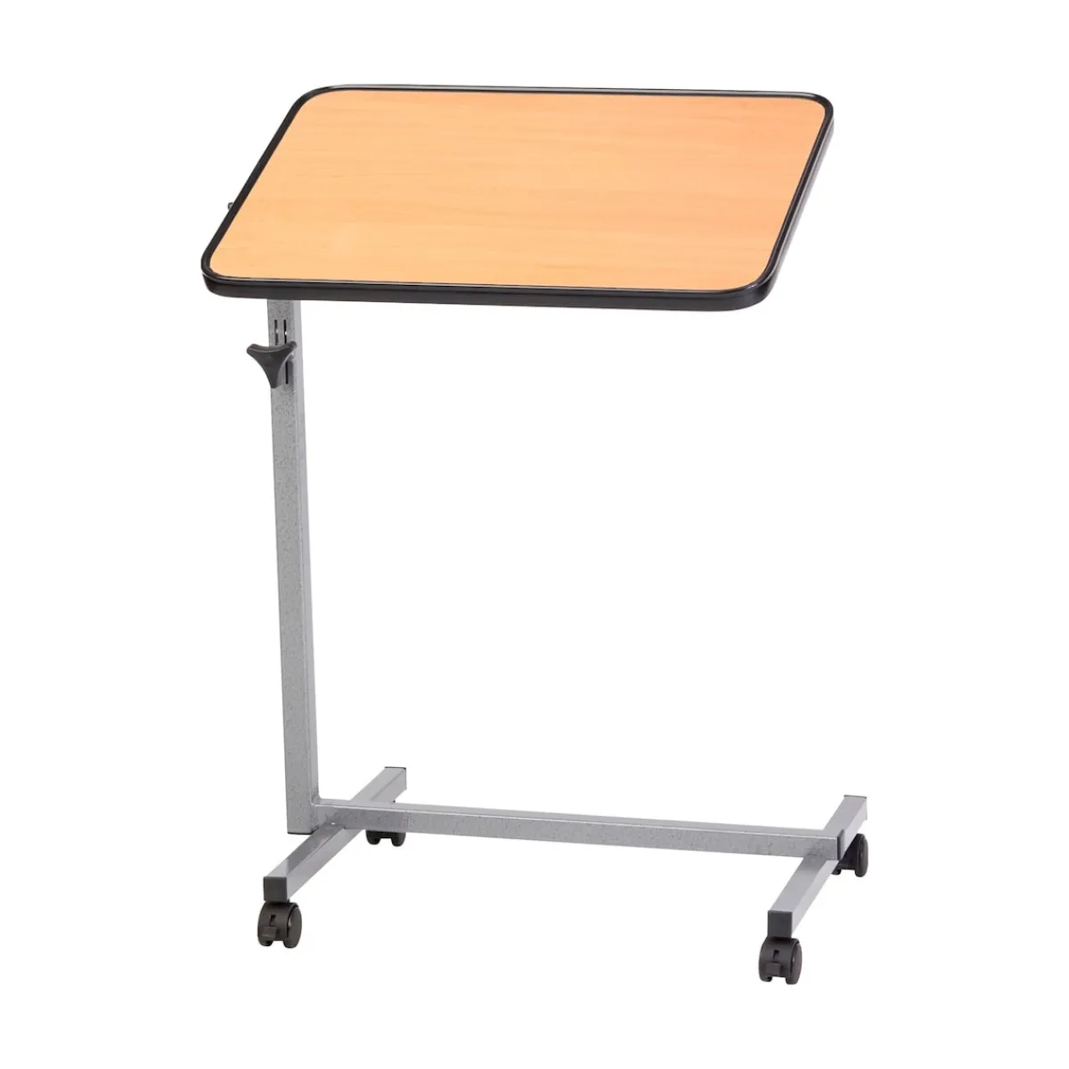Als rollendes Tablett, mobiler Tisch am Bett, Sofa oder Sessel einsetzbar. Stufenlos höhenverstellbar. Die Tischplatte ist kippbar, die erhöhte Umrandung sorgt dafür, dass nichts herunterrutscht. Belastbar bis 10 kg.