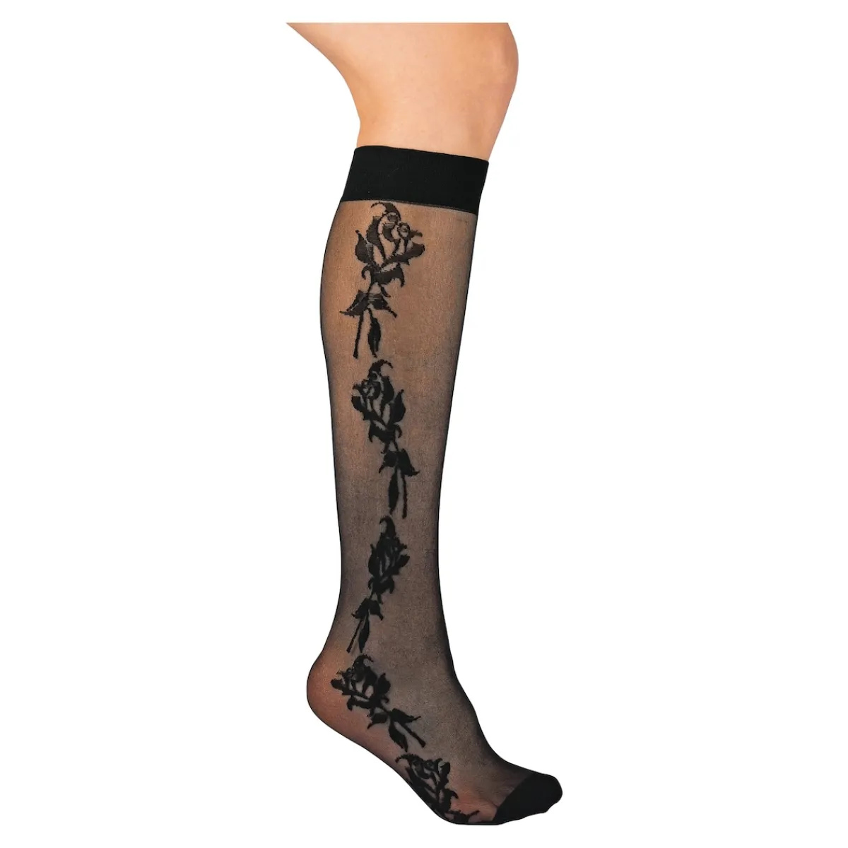 Diese schönen Design-Kniestrümpfe überzeugen mit vier tollen Motiven in transparenter Tattoo-Optik. Ob zu Röcken oder Kleidern: Diese Kniestrümpfe sind der perfekte Begleiter für besondere Anlässe und setzen Ihre Beine gekonnt in Szene. Die eleganten Muster sorgen für einen Hauch von Raffinesse und lassen Sie stilvoll und feminin auftreten. Angenehm breiter Gummibund. Nahtloser Fersenbereich. Einheitsgröße passend von Größe 36-42.