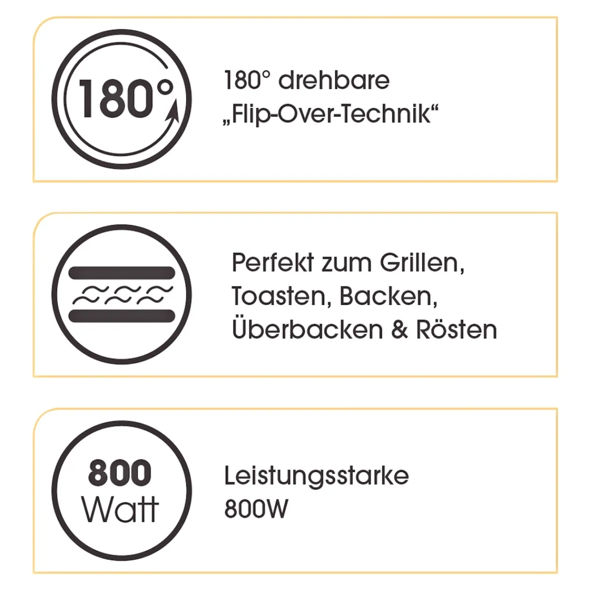 - gleichmäßiges Garen dank 2 Heizelementen mit 800 W