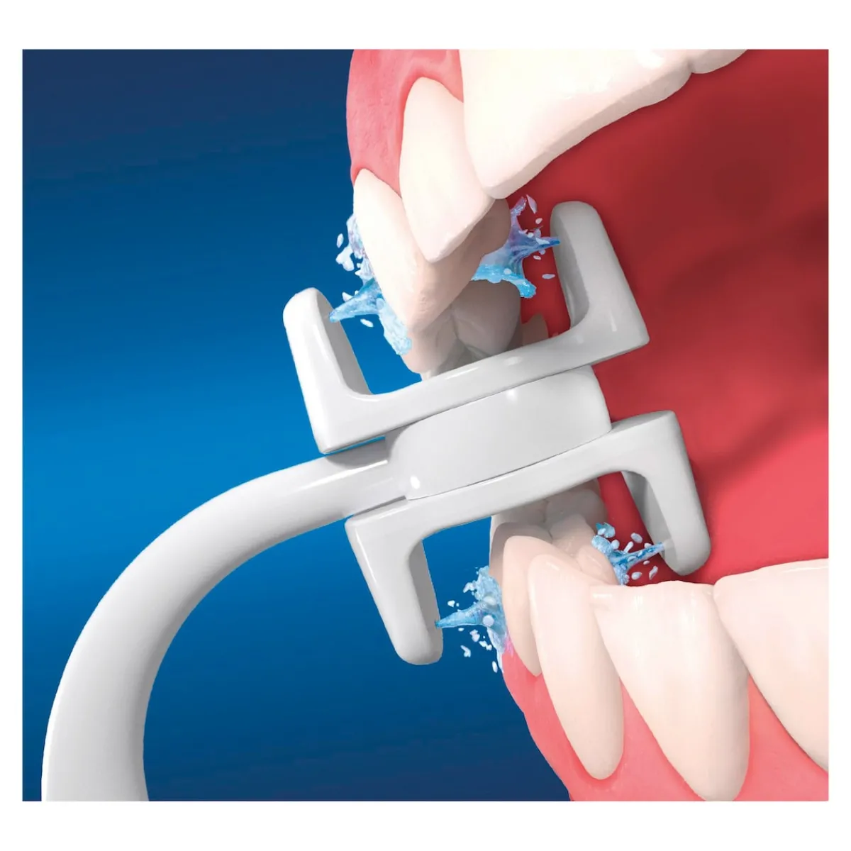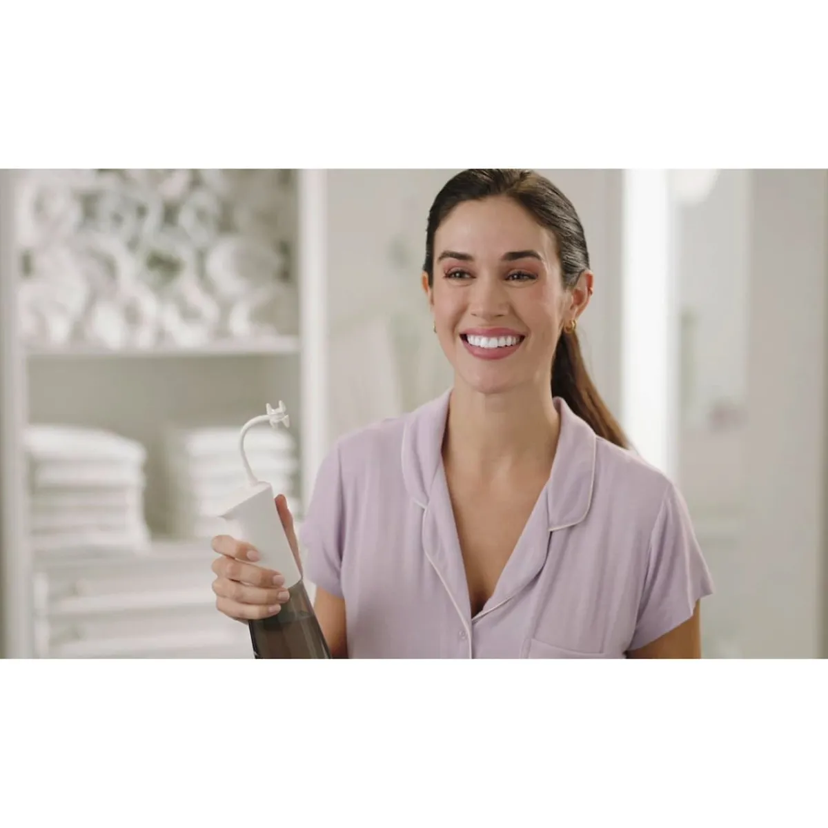 Die CorpCare MiracleSmile elektrische Munddusche für eine gründliche Reinigung von Zähnen und Zahnzwischenräumen. Der H-förmige Reinigungsaufsatz erreicht selbst schwer zugängliche Stellen, während der individuell einstellbare Wasserdruck eine sanfte und effektive Pflege gewährleistet – ideal für empfindliches Zahnfleisch.