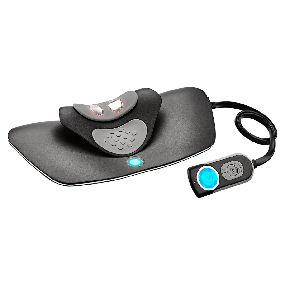 Sanfte, aber effektive Hilfe bei Schmerzen im Kopf-, Nacken- und Schulterbereich – häufig ausgelöst durch Überbeanspruchung und einseitige Überlastung. Entstressen Sie diese Bereiche jetzt sanft mithilfe innovativer Technik und dem Zusammenspiel von Luftkissen, Streckmodul, Impulsmassage und Wärme. Durch Strecken und elektrische Impulse können sich Verspannungen lösen und die Muskeln wieder entspannen. Komfortabel: Fernbedienung mit voreingestellten Automatikprogrammen für Dehnung und Impuls-Massage. Alle Funktionen können individuell angepasst werden. Außerdem ermöglichen zwei zusätzliche flexible Elektroden gezielte Impuls-Massage zum Beispiel an Rücken, Knie oder Ellenbogen.