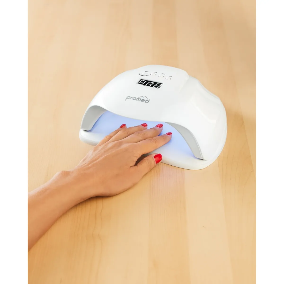 Das Dual-Power-System mit 32 LEDs sorgt für gleichmäßiges Aushärten des Nagellacks. Mit 4 Timerstufen (10, 30, 60, 99 Sek.). Mit Digitalanzeige und Netzteil. LED-Lebensdauer: ca. 50.000 h.