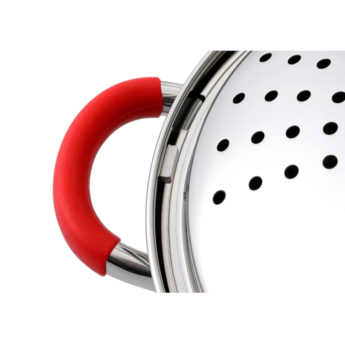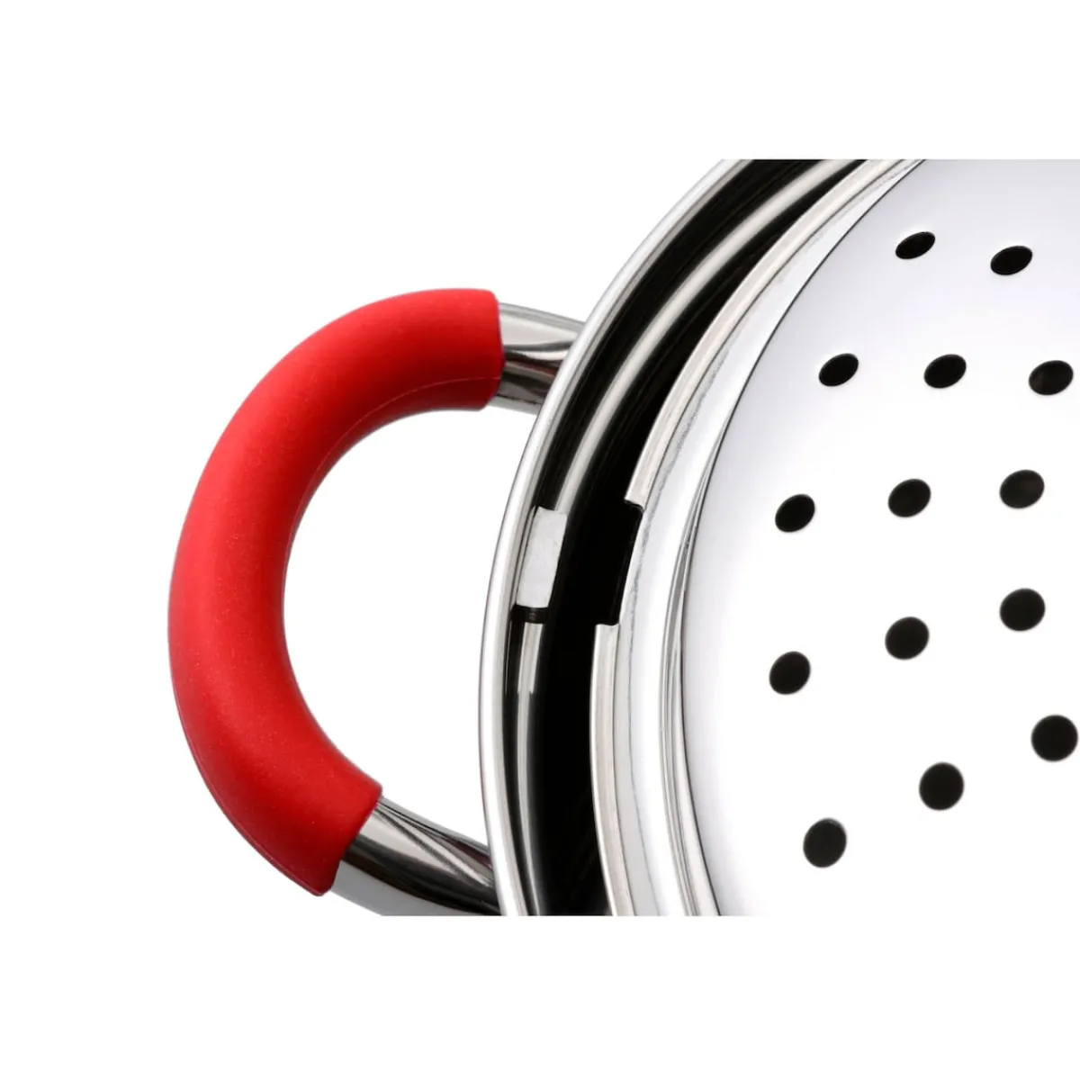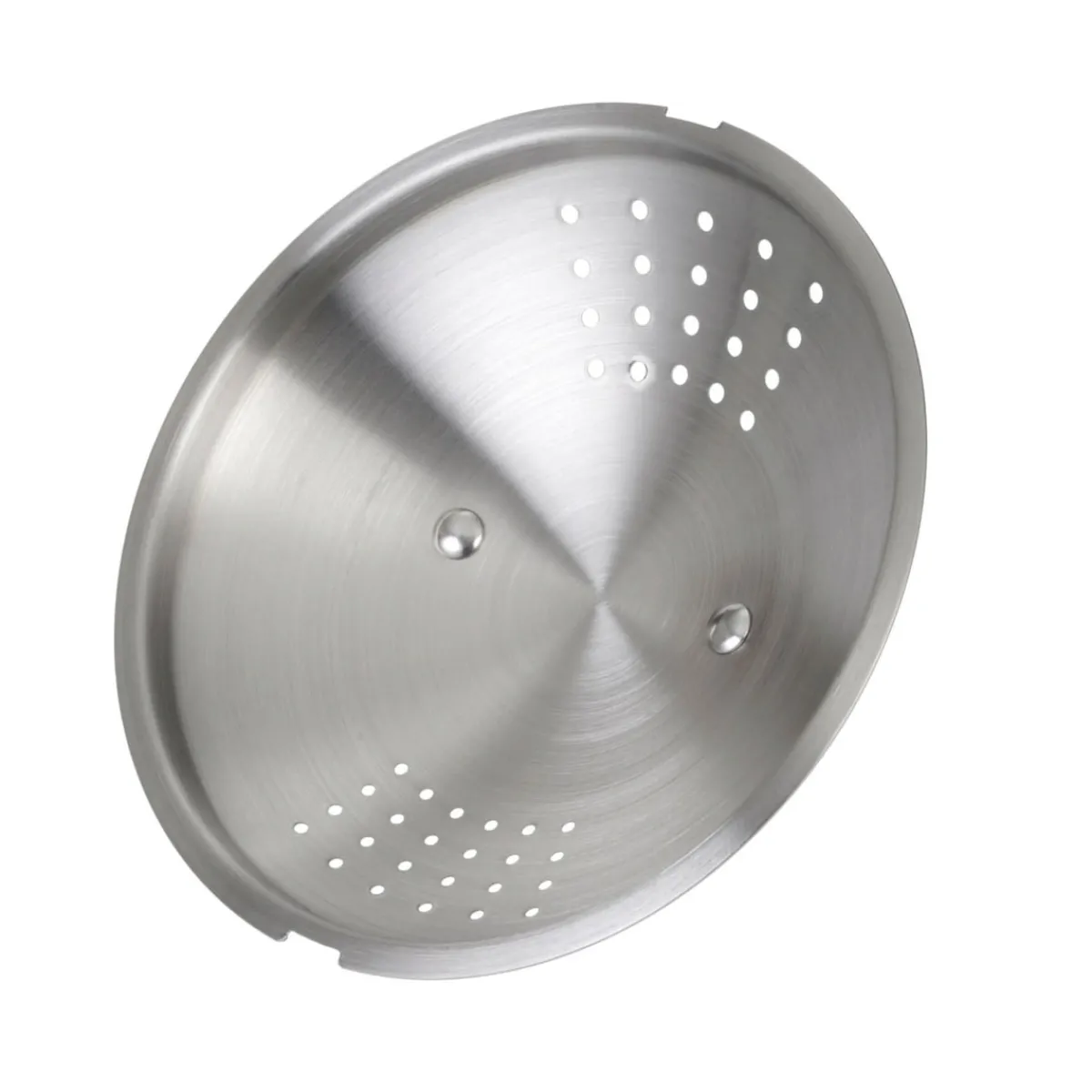 Der Deckel verfügt über zwei verschiedene Lochgrößen und lässt sich am Topf befestigen.