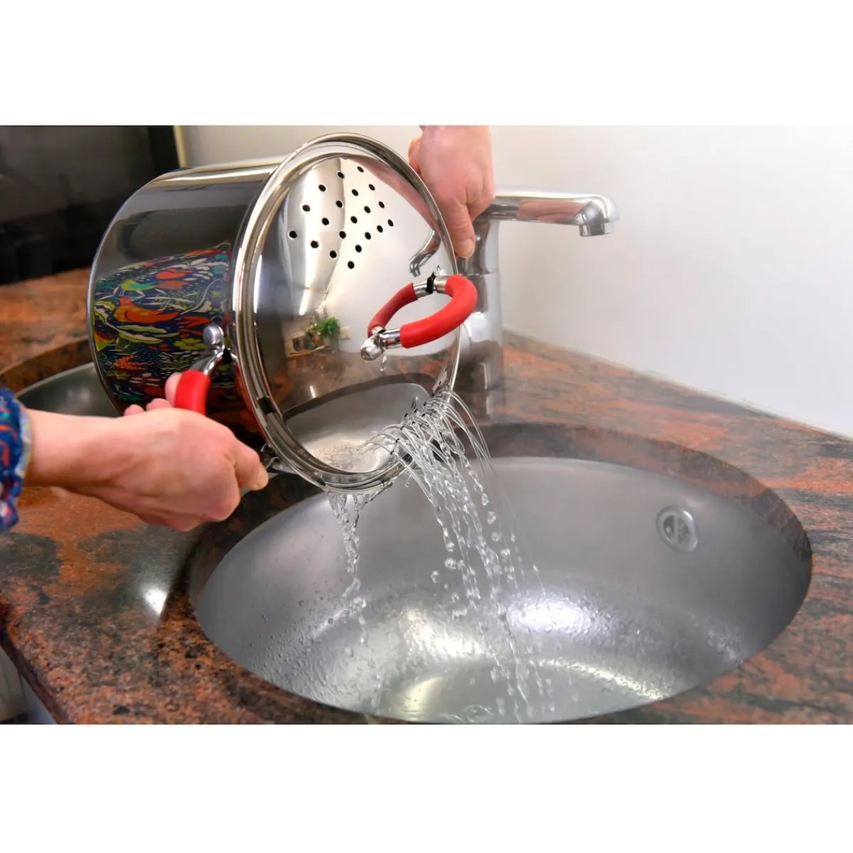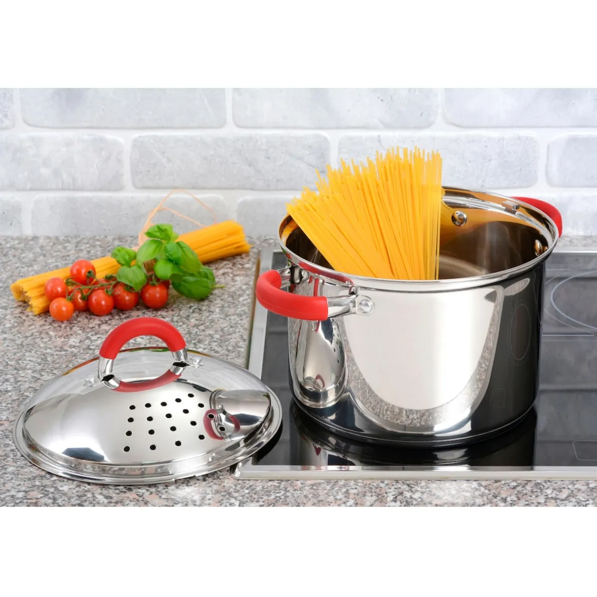 Genialer Kombi-Kochtopf, in dem Nudeln oder Kartoffeln gekocht werden und direkt ohne umschütten, abgegossen werden können.