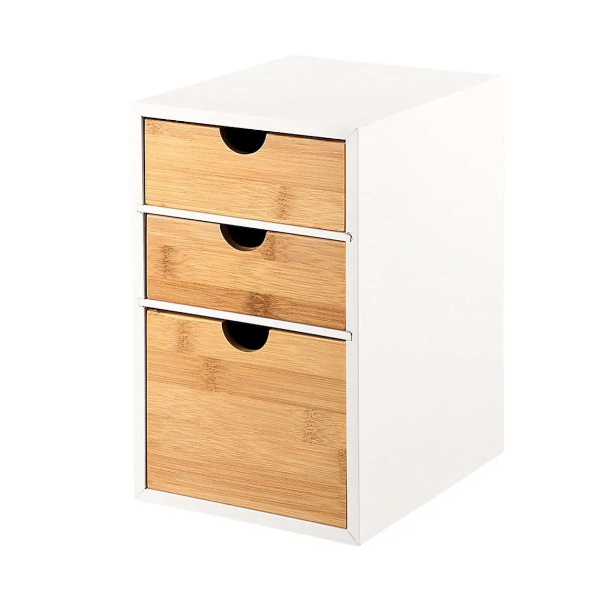 Ob für Kosmetik, Bürobedarf oder kleine Alltagsgegenstände: Mit drei leicht entnehmbaren Schubladen bietet dieser Organizer eine praktische Lösung für mehr Ordnung. Dank seiner schmalen, hohen Form passt er selbst auf kleine Flächen und überzeugt mit einem klaren, modernen Look. Ein stilvoller Ordnungshelfer für jedes Zuhause.