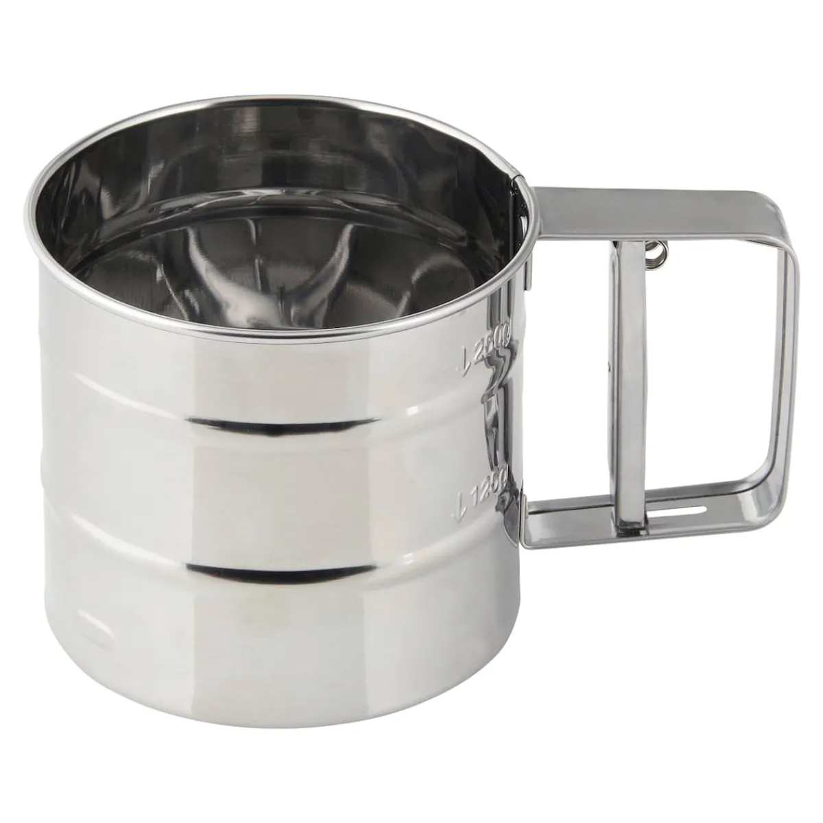 Schon Großmutter wusste: Gesiebtes Mehl macht den Kuchen schön luftig. Das ideale Werkzeug dafür ist das Patisserie Mehl- und Puderzuckersieb aus Edelstahl. Mithilfe der integrierten Messskala (125 Gramm, 250 Gramm und 350 Gramm) füllen Sie schnell die für Ihr Rezept benötigte Menge Mehl ein. Danach nehmen Sie das Sieb bequem in eine Hand und halten es über die Teigschüssel. Durch Betätigen des am Griff befindlichen Hebelmechanismus rieselt das Mehl fein gesiebt und frei von störenden Klumpen unten heraus. So gelingen Ihnen herrlich fluffige Backkreationen wie vom Profi-Konditor.