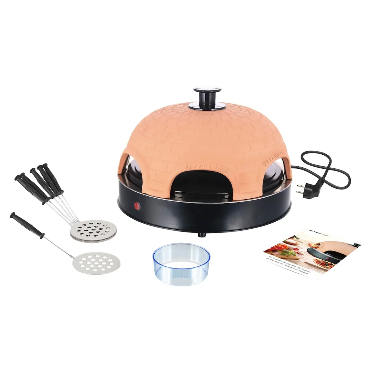 Backen Sie ihre eigene Pizza in einem echten Terrakotta-Ofen einfach am Tisch. Durch eine gesteuerte Heizung und die Tonhaube aus echtem Terrakotta wird die Hitze gleichmäßig verteilt. So erhalten Sie eine knusprige und ofenfrische selbstgemachte Pizza.