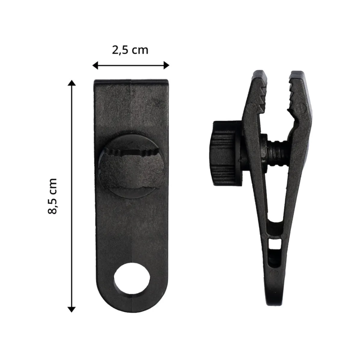Im Garten finden die Planen-Klipps Verwendung bei der Abdeckung von Holz, Grill, Schwimmbecken, Pflanzen und bei Sonnensegeln etc. Beim Camping können sie für Zelte, Markisen oder Wohnwagen verwendet werden und auch auf Wander- oder Bergtouren sind die kleinen Helfer nützlich. Dieses System ist wesentlich einfacher, flexibler und kostengünstiger als Ösen in Planen oder Stoffe einsetzen zu lassen. Besonders in einer Notsituation, wenn beispielsweise während eines Sturms die Ösen ausreißen oder das Zelt schnell befestigt werden muss, sind sie sofort zur Hand. Dadurch lassen sich Beschädigungen und eine zeitaufwendige Säuberung der Gegenstände, die geschützt werden sollen, vermeiden. Deshalb ist es sinnvoll, zu Hause oder beim Campingurlaub immer ein paar Klipps als Reserve zur Hand zu haben. Ein Set der Planen-Klipps enthält vier schwarze Klipps mit einer Breite von 2,5 und einer Länge von 8,5 Zentimetern.