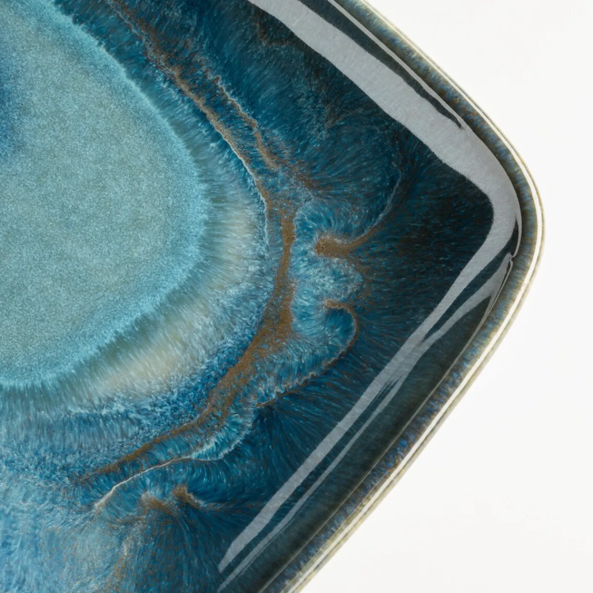 Wohl in jeder Alpenregion gibt es ihn: Den tiefen See, um den sich Legenden ranken. Der zum Baden meist zu kalt ist. Der Ruhe ausstrahlt und zum Verweilen einlädt. Die facettenreiche Kollektion Tiefer See mit ihren ineinanderfließenden Farbnuancen ist eine Hommage an diesen ganz besonderen Ort. An ihren Rändern spiegeln sich die umgebenden Berge auf einer sich kräuselnden Wasseroberfläche. Ihre beinahe dreidimensional erscheinende Mitte bringt die Kraft der Tiefe und Stille auf den Esstisch.