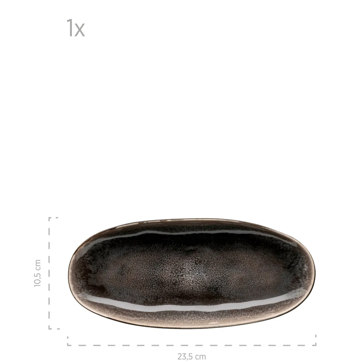 Die unvergleichliche Keramikgeschirr-Serie „Niara Organic“ verbindet auf einzigartige Weise eine zufällig wirkende organische Formgebung mit zwei unterschiedlichen Glasurtechniken: Auf den Ober- bzw. Innenseiten der Geschirrteile fließen edle braune Farbschattierungen auf schwarzem Untergrund zu wunderbaren Maserungen zusammen. Die Außen- bzw. Unterseiten hingegen bestechen durch eine Mattglasur in Schwarz, welche mit glänzenden schwarzen Sprenkeln überzogen wurde. Mit ihrem exquisiten und individuellen Charakter ist die Kollektion „Niara Organic“ ein echter Hingucker auf jedem Esstisch. Gefertigt aus langlebigem, hochwertigem Steinzeug (welches nicht mit dem deutlich brüchigeren Steingut zu verwechseln ist) wird Ihnen dieses Plattenset lange Freude bereiten. Selbstverständlich ist die gesamte Serie mikrowellen- und spülmaschinengeeignet.