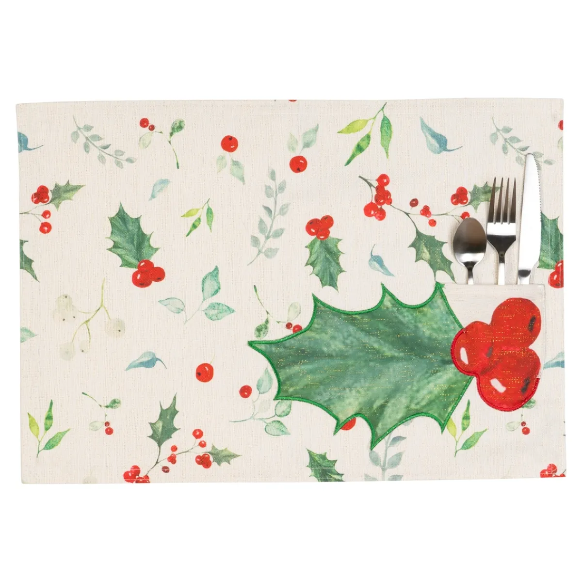 Traditionell sorgt die Stechpalme an Weihnachten für festlichen Glanz. Jetzt sogar als exquisite Platzsets mit Bestecktasche.